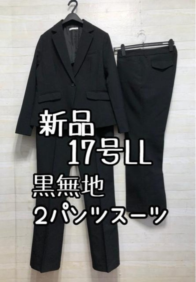新品☆17号LL♪黒無地2パンツスーツ♪お仕事オフィススーツに♪美脚☆Q638