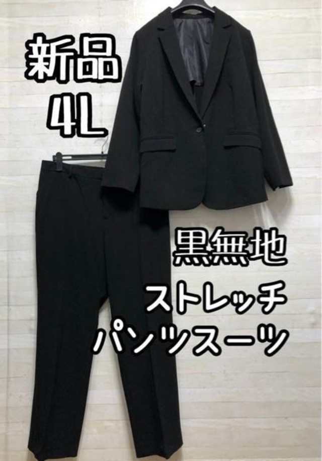 新品☆4L♪黒無地パンツスーツ♪ストレッチ♪ストレートパンツスーツ☆Q635