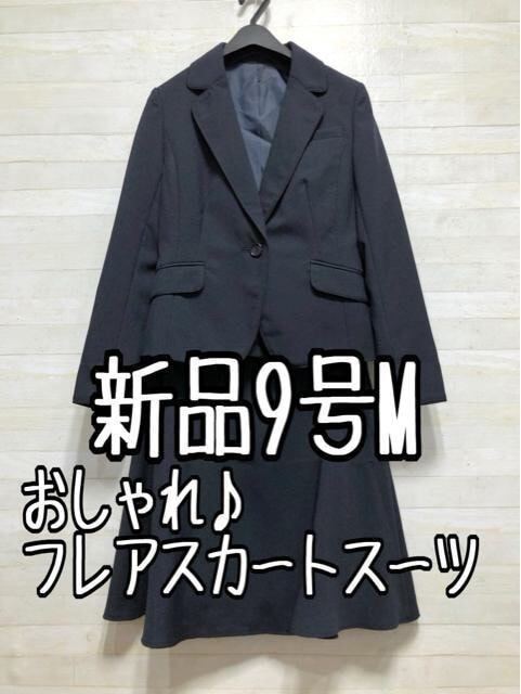 新品☆9号M紺系無地♪お仕事・通勤に♪フレアスカートスーツ☆p676