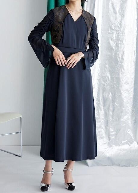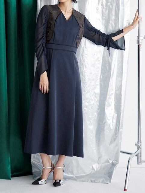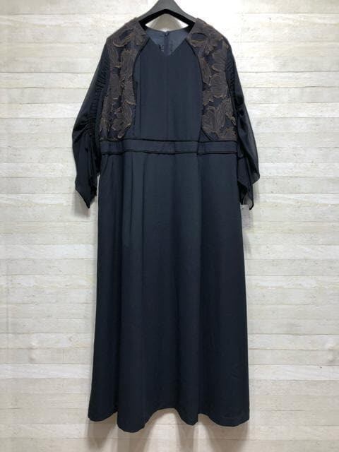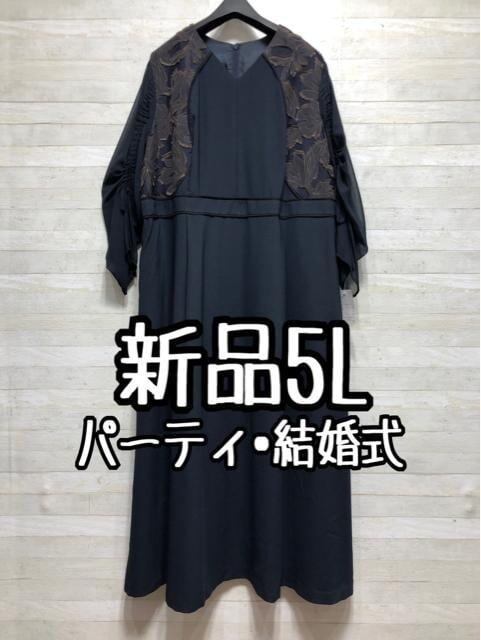 新品☆5L紺系♪デザインワンピースドレス♪パーティ・結婚式☆A265