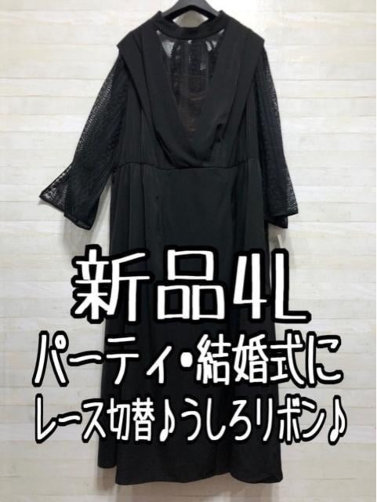 新品☆4L黒系♪レースきれいパーティーロングワンピース♪フォーマル☆A264