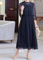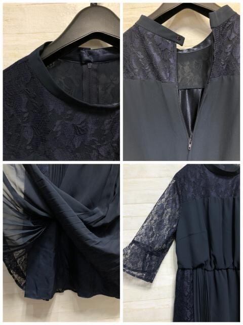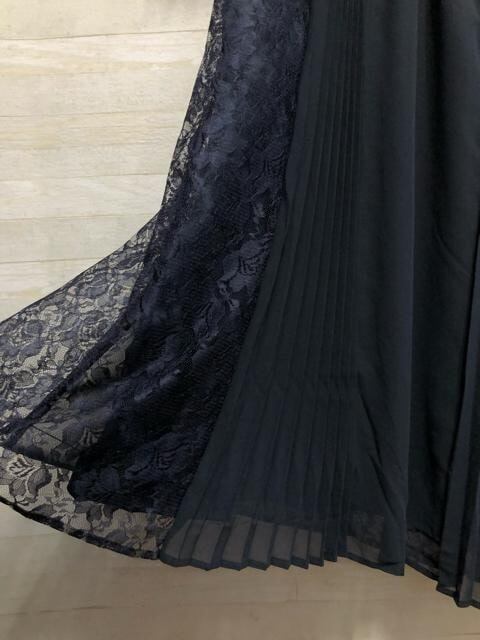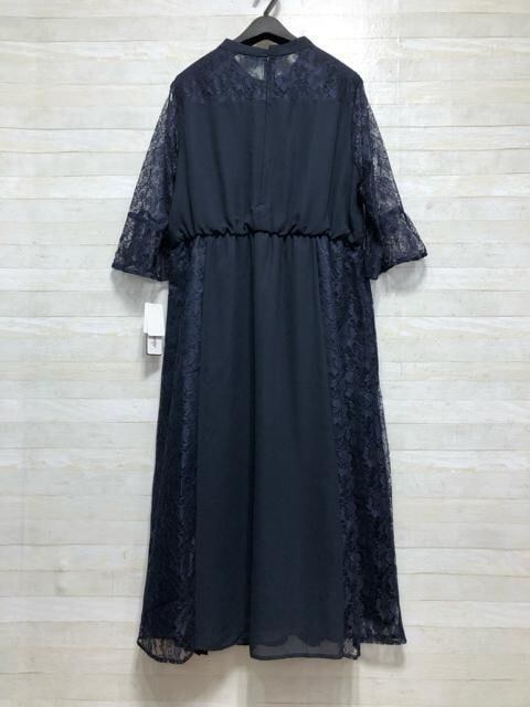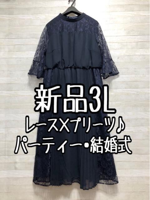 新品☆3L紺系♪プリーツ&レースおしゃれデザインワンピドレス♪結婚式☆A216