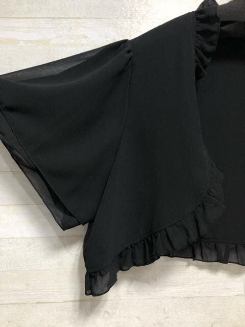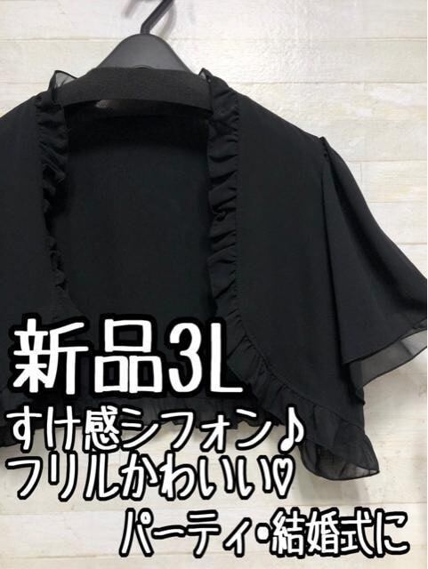 新品☆3L黒系♪シフォン×フリル♪フェミニンボレロ♪わけあり☆A219