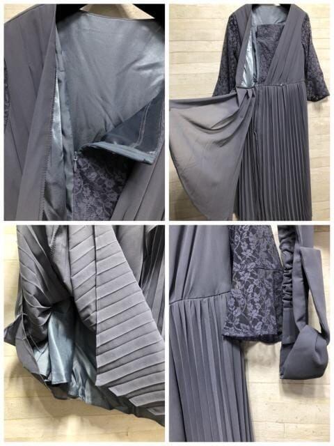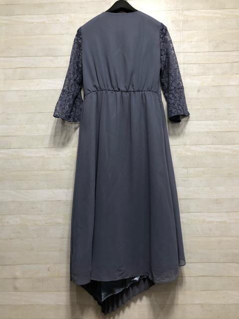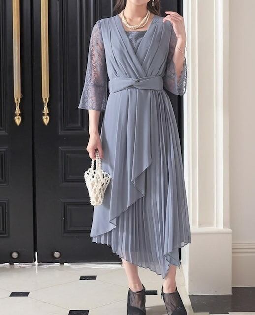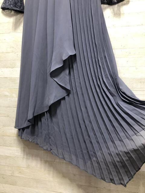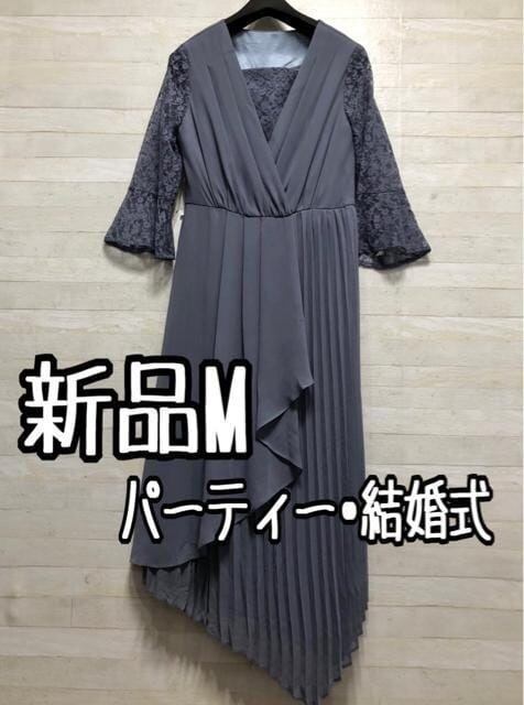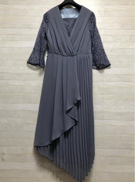 新品☆Mブルーグレー系♪プリーツ上品アシメデザインワンピ♪結婚式☆A212