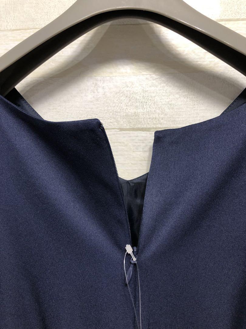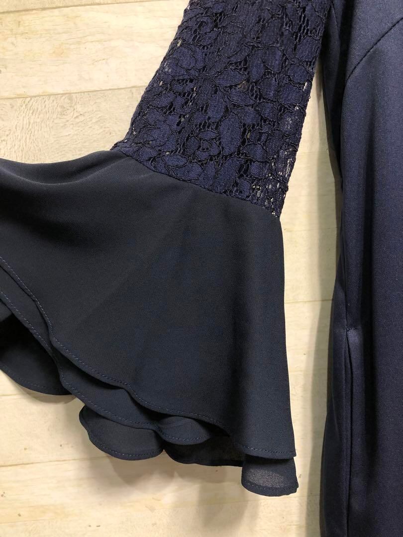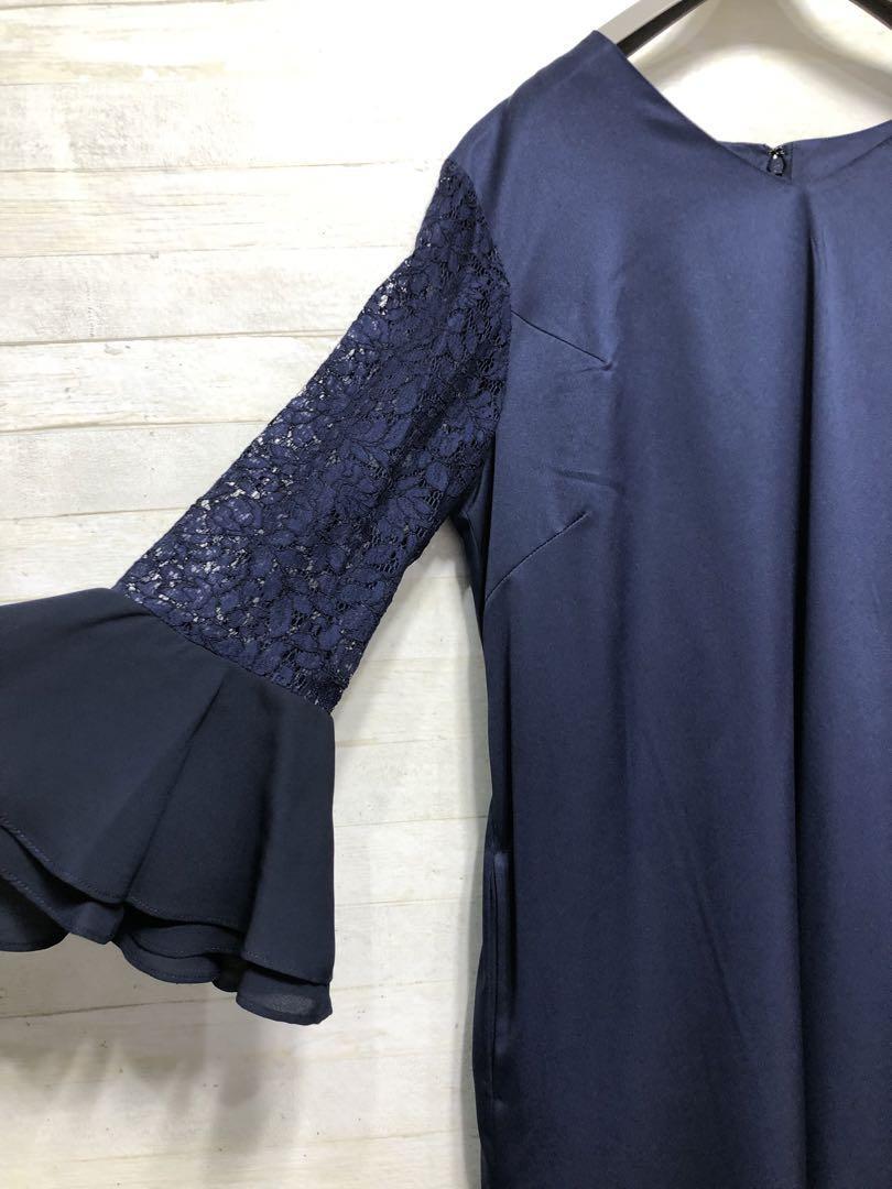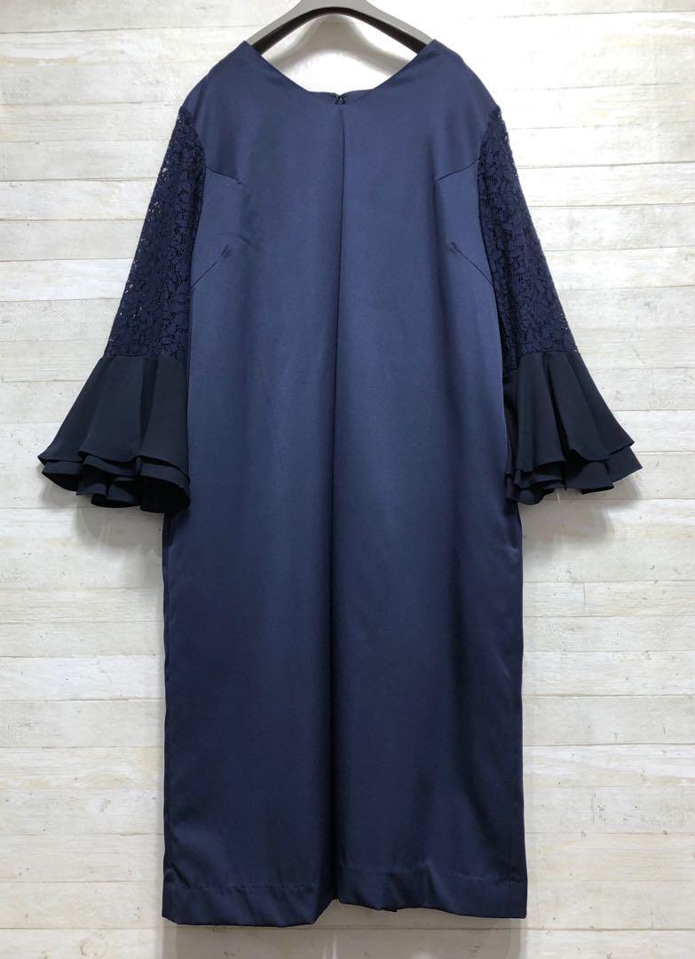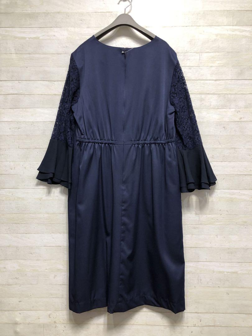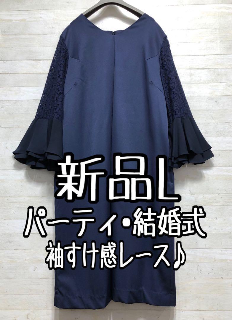 新品☆Lサイズ紺パーティワンピースおでかけフォーマル〇G373