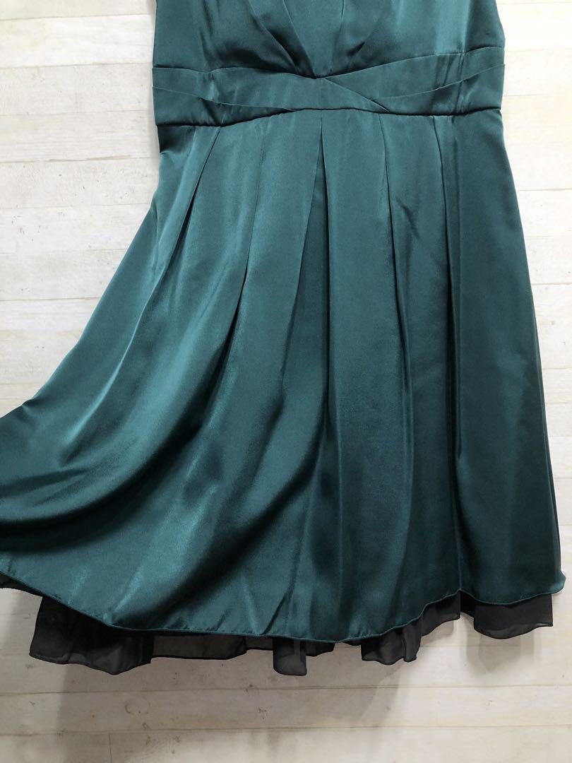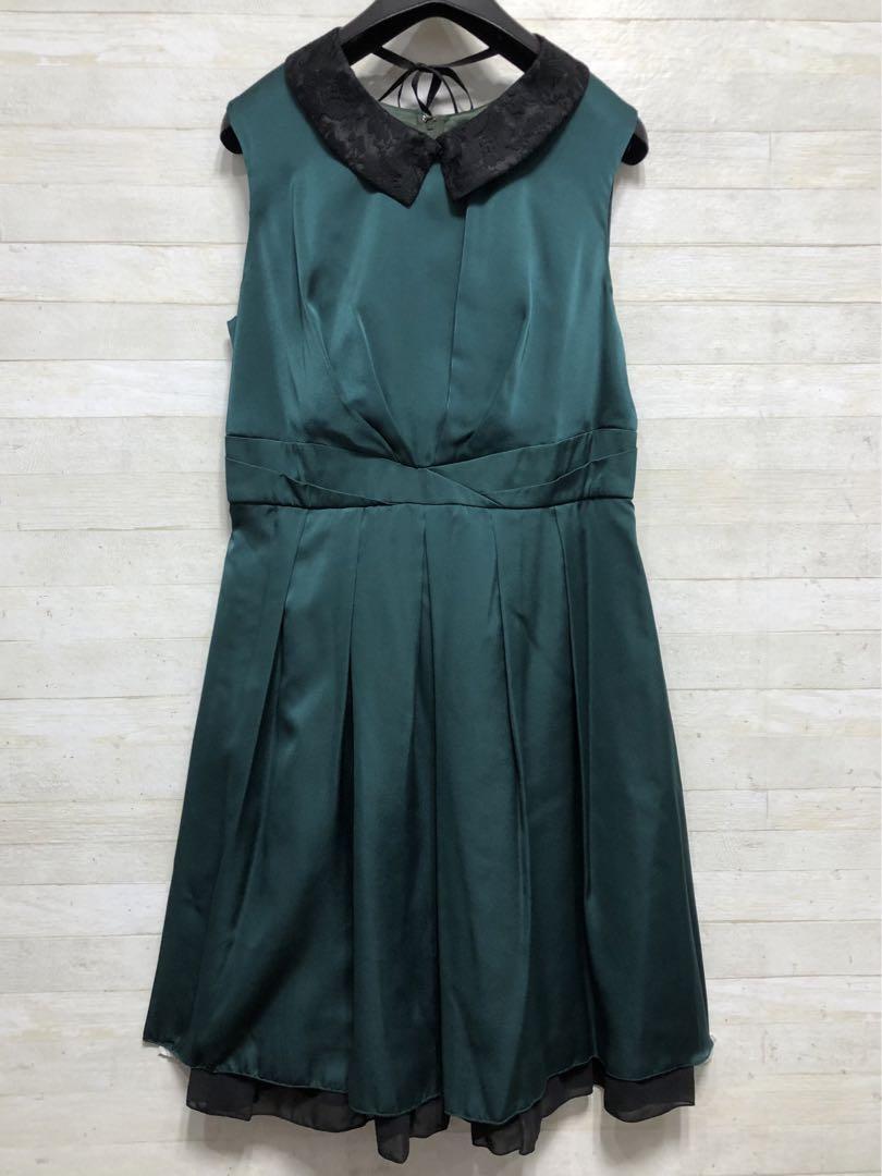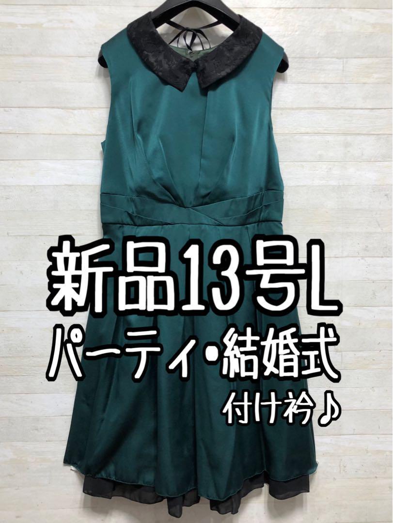 新品☆13号Lグリーン系パーティワンピース♪花柄レース襟♪シックな印象〇G374
