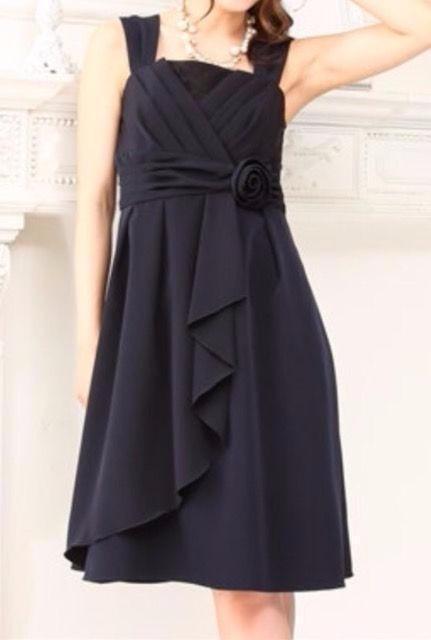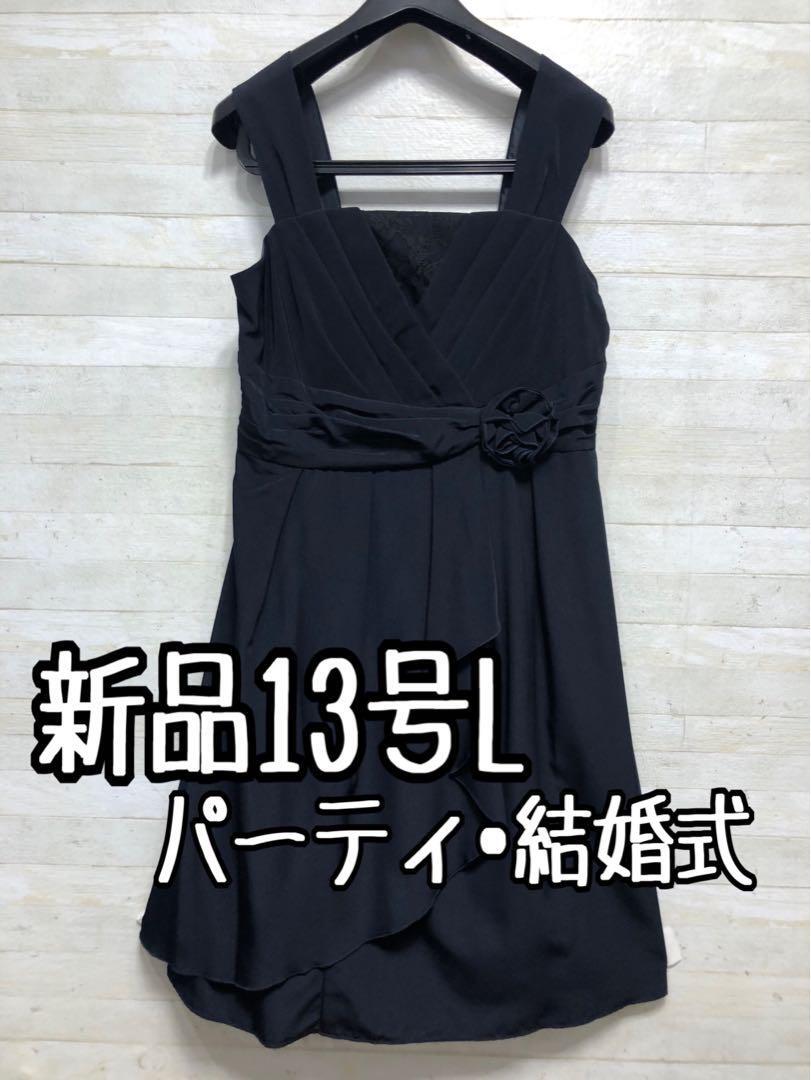 新品☆13号L♪ネイビー系パーティワンピース♪前開き♪シックな印象〇G376