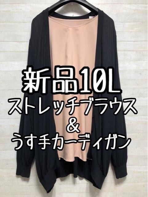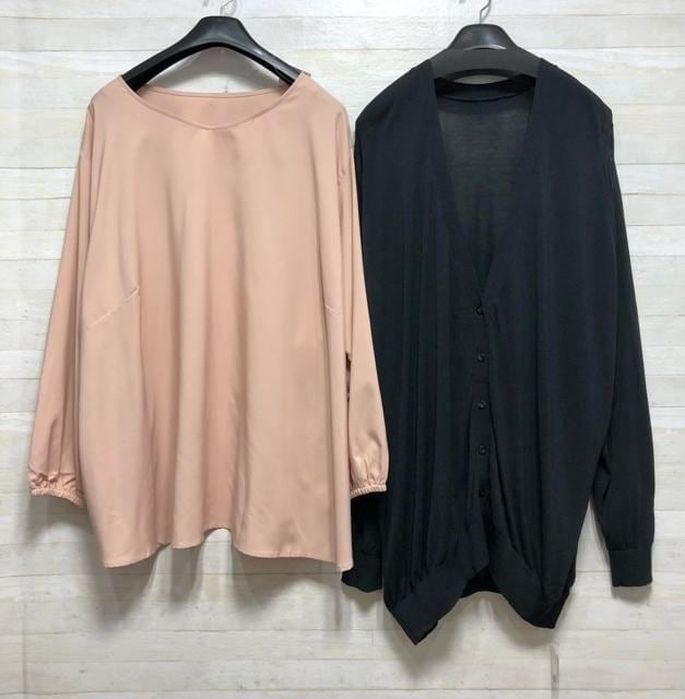 新品☆10L♪お仕事やきれいめにも♪しっとりブラウス&うす手カーデ〇D549