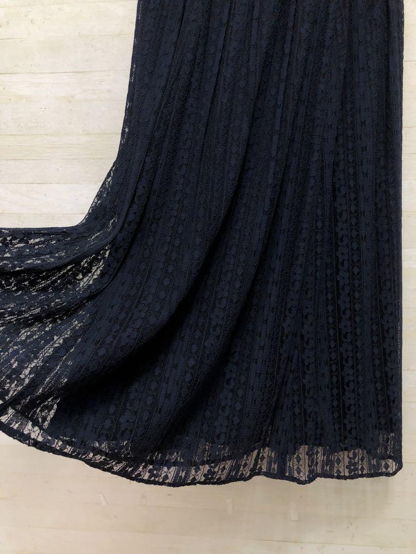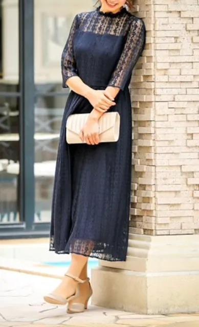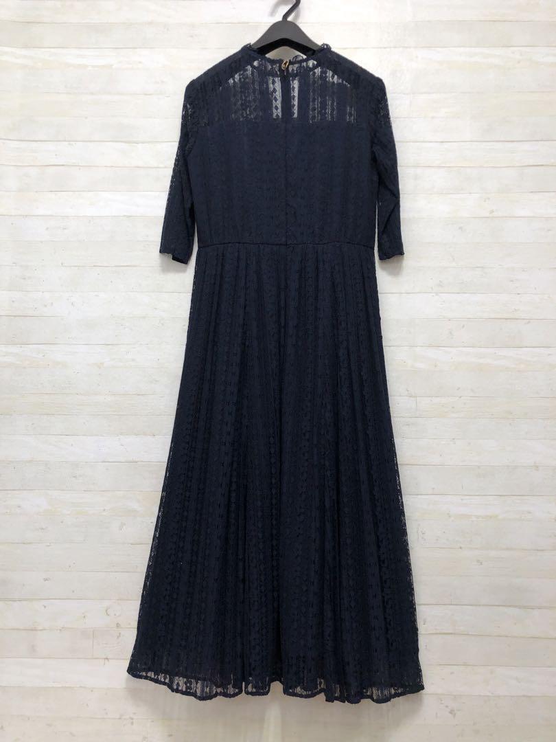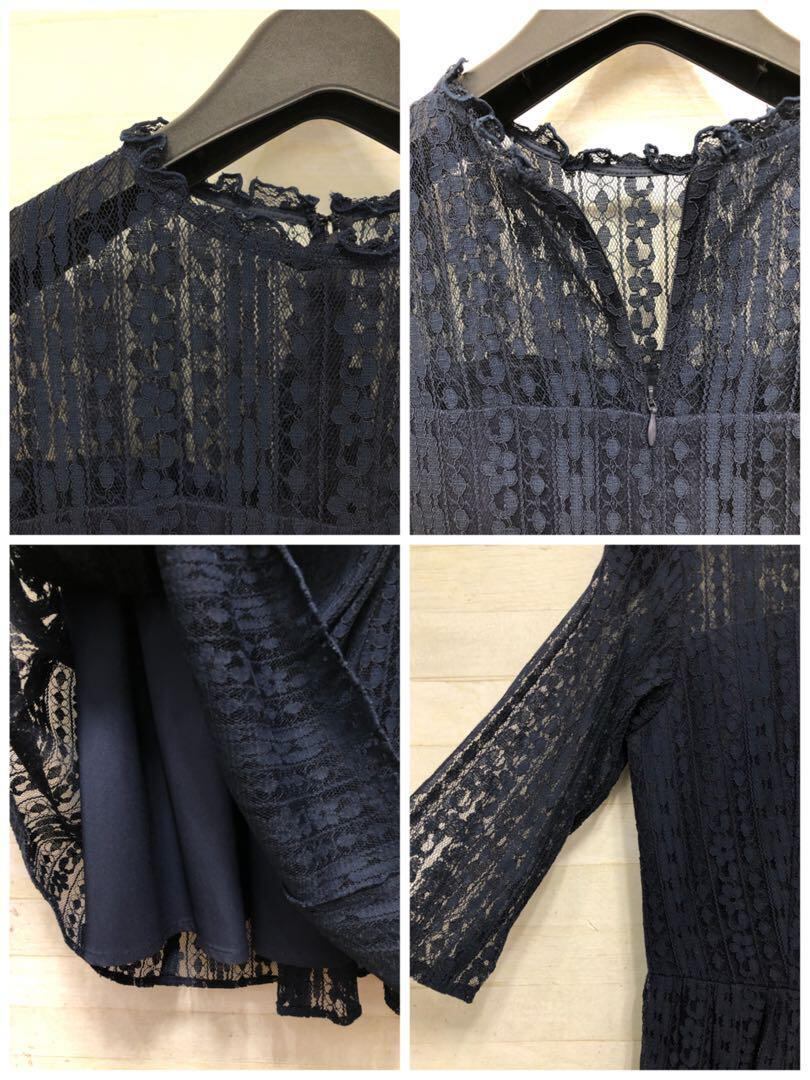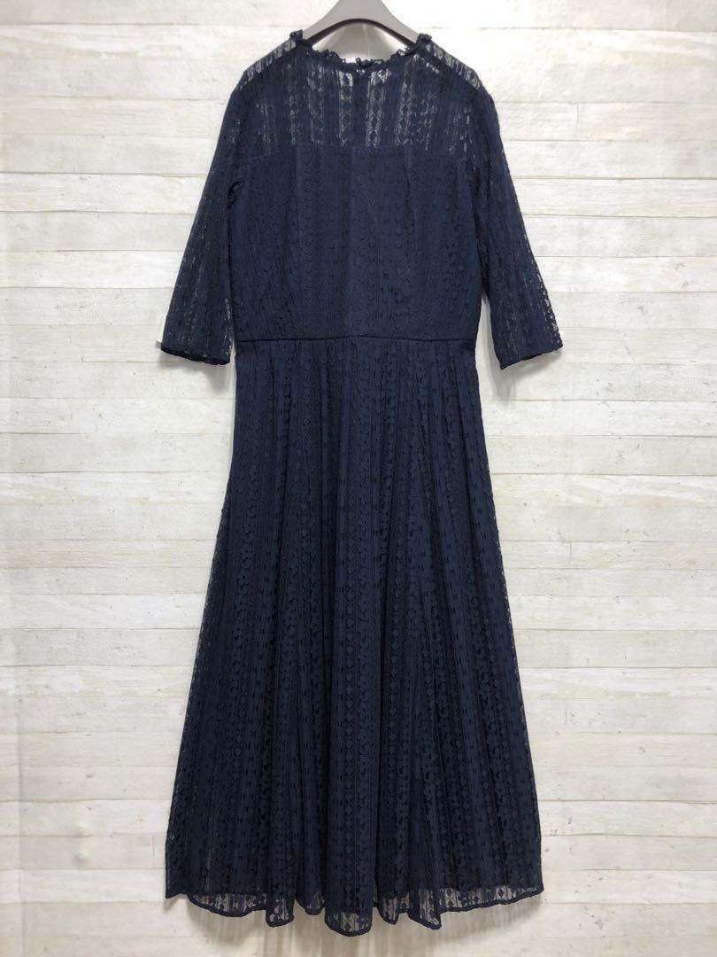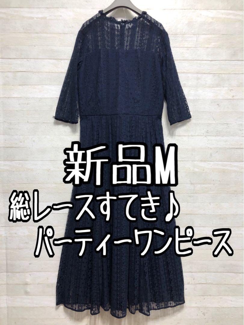 新品☆M♪紺色の総レースのロングパーティワンピース♪二次会や謝恩会〇D566