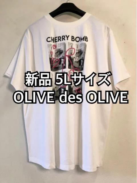 新品☆5L 白系♪OLIVEdesOLIVE♪手触り◎プリントTシャツ☆d675
