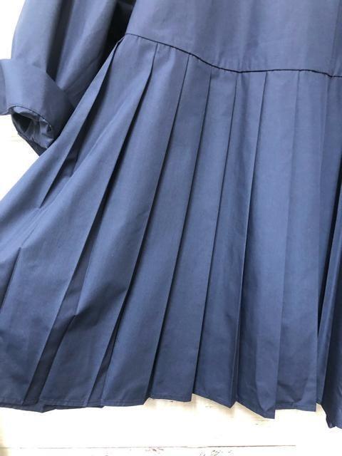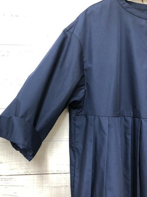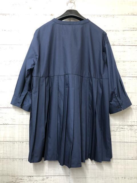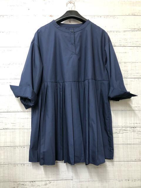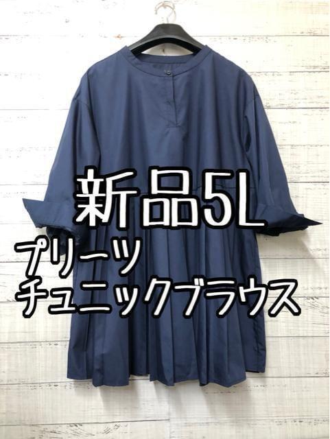 新品☆5L♪紺系♪プリーツきれいチュニックブラウス♪7分袖♪おでかけ☆k494
