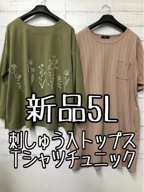 新品☆5L♪刺しゅう入♪長袖トップス&半袖Tシャツチュニック♪☆s644