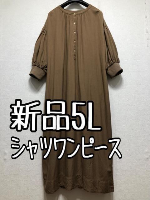 新品☆5L茶系ナチュラルおしゃれなゆったりシャツワンピース☆w411