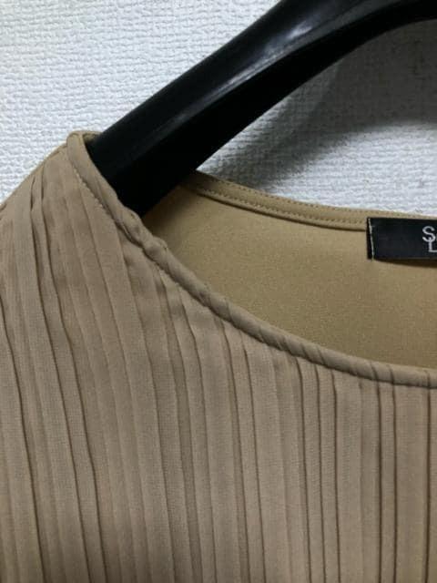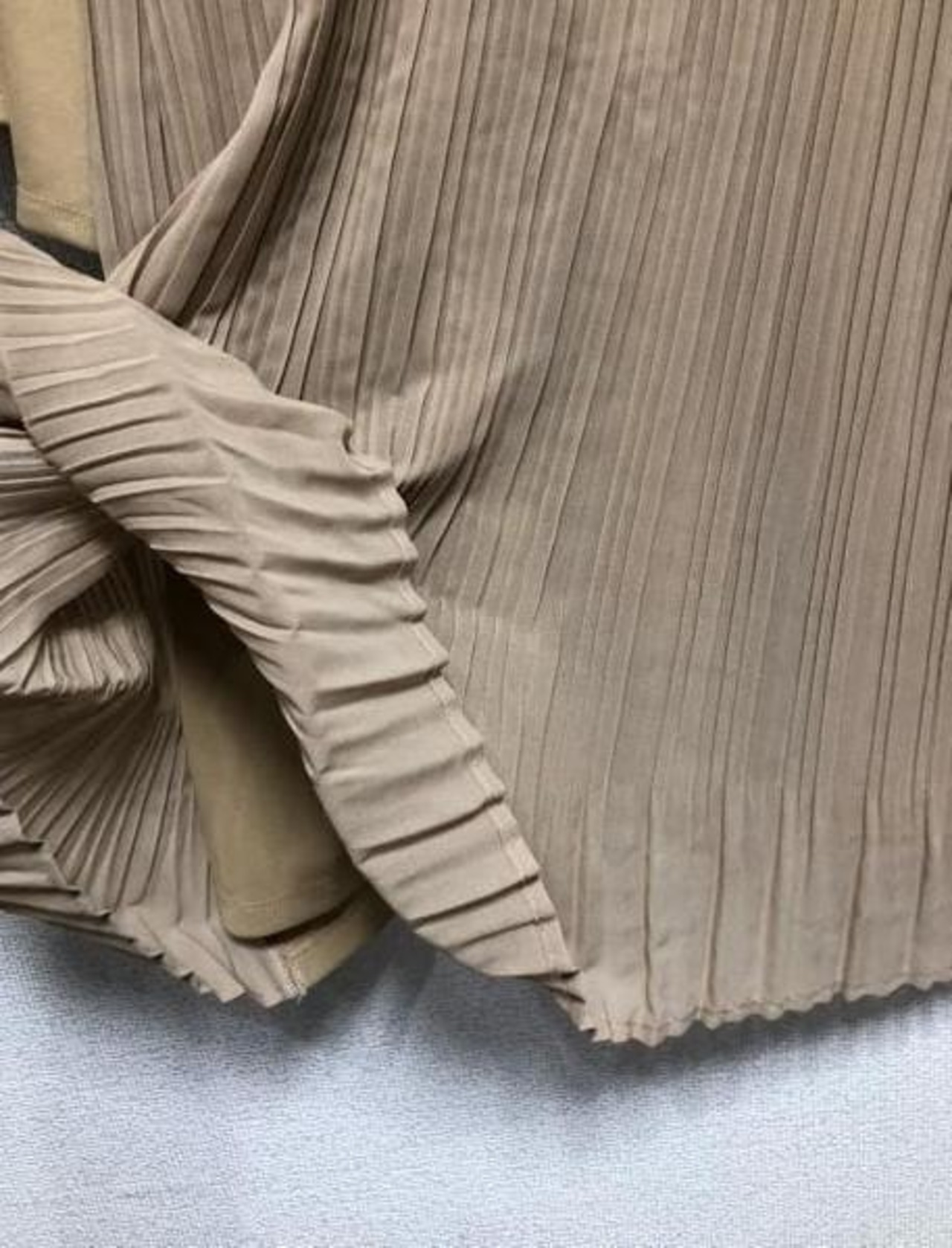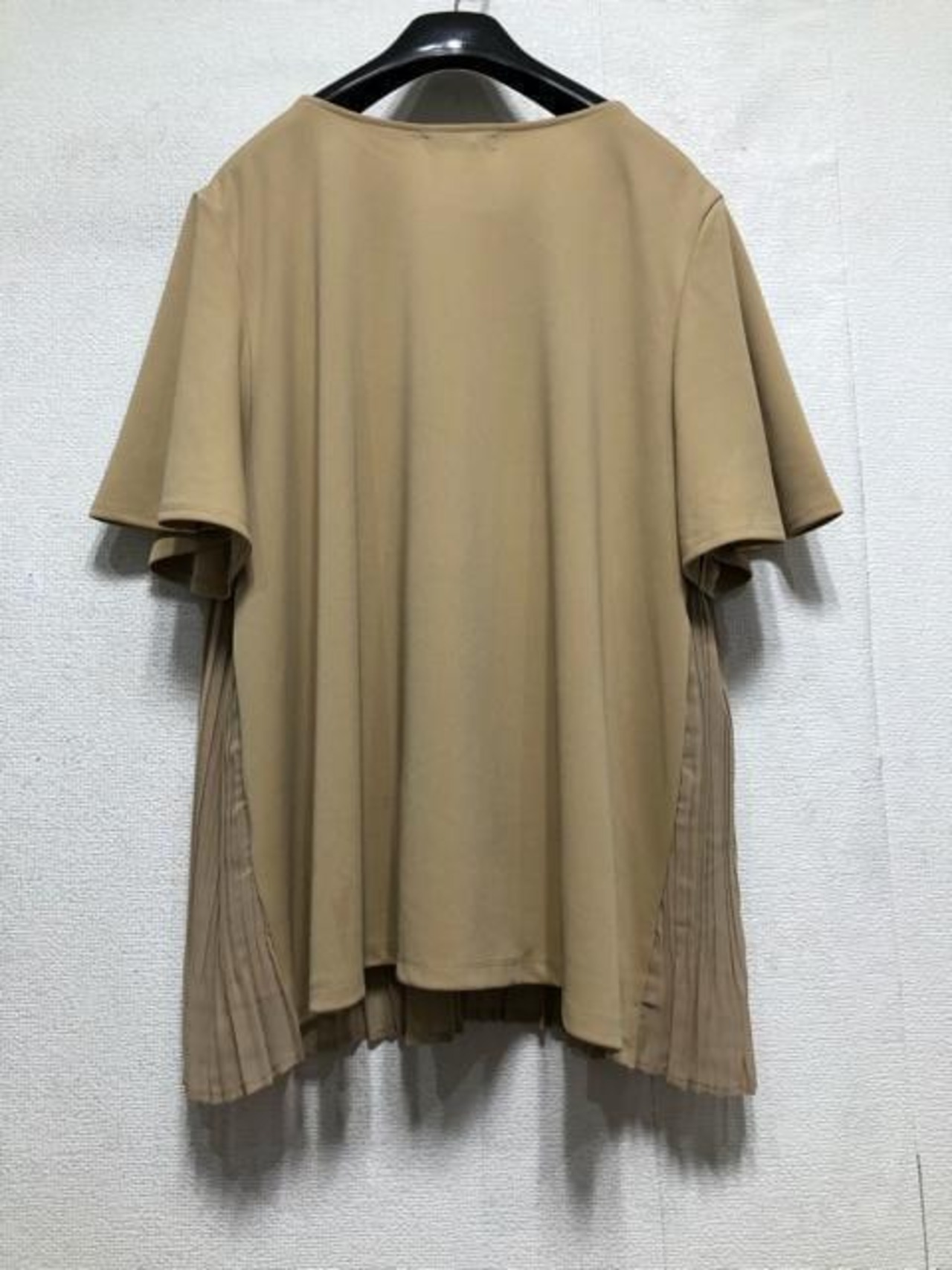 新品☆5Lベージュ系♪おしゃれプリーツうす手トップス♪UVカット☆a669
