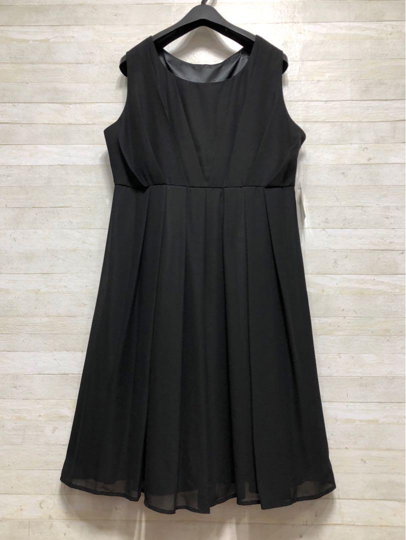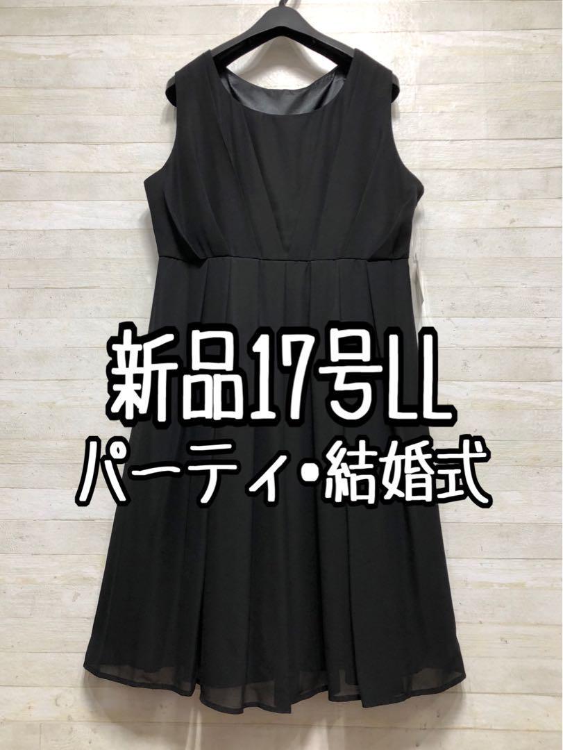 新品☆17号LL♪黒系のパーティワンピース♪謝恩会や二次会などに最適〇D568