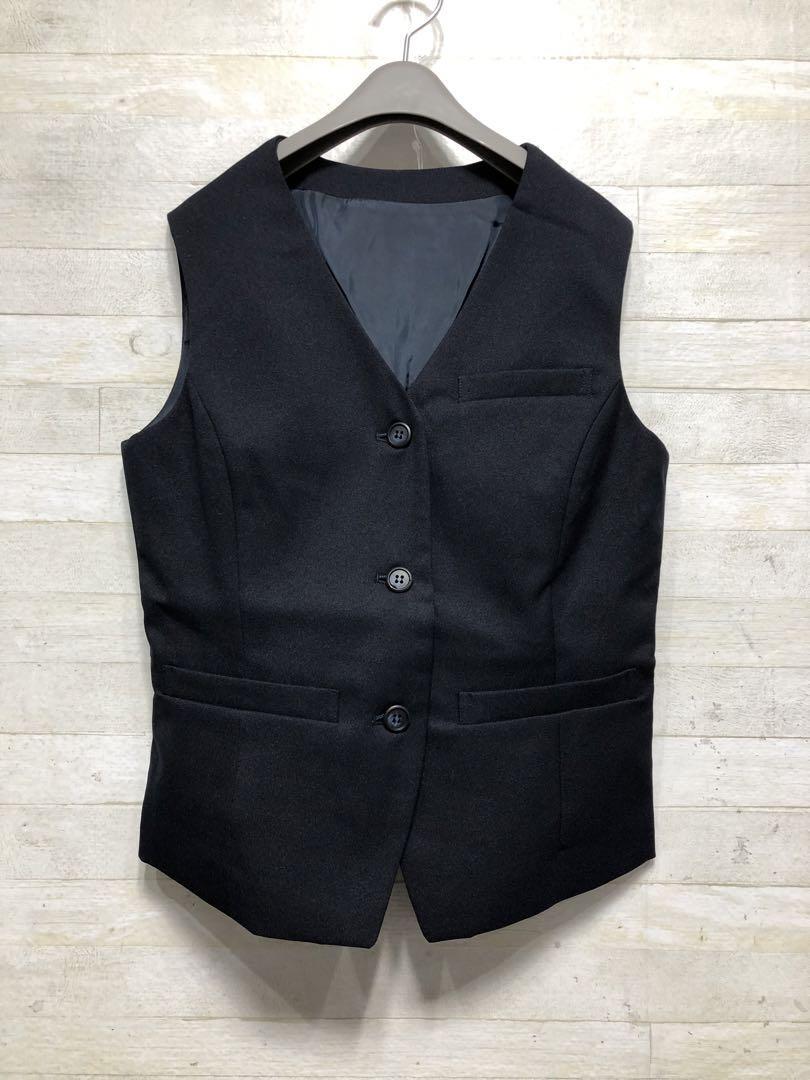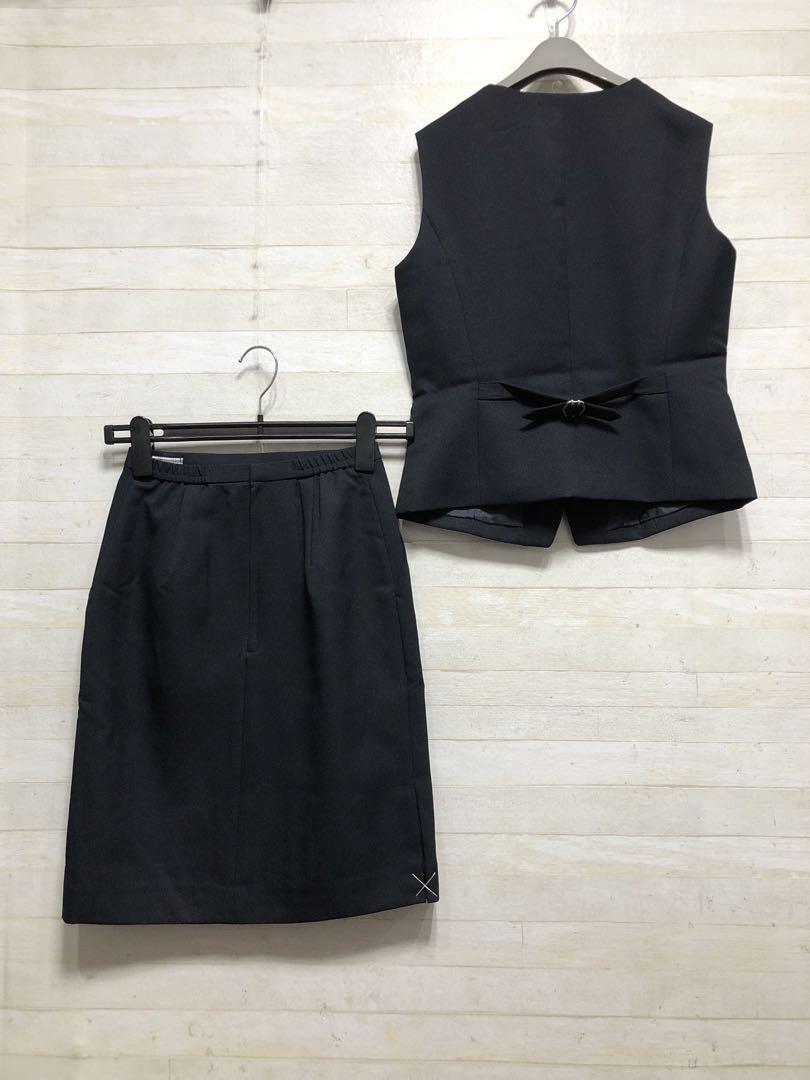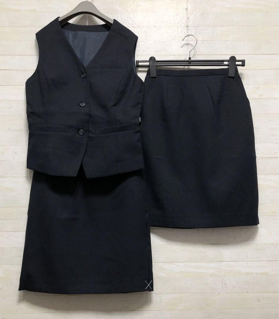 新品☆5号S紺系ベストスカートスーツ♪防汚抗菌消臭加工♪スカート2枚付〇D581