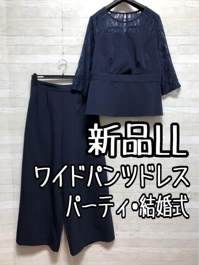新品☆LL紺系♪ワイドパンツドレス♪セットアップ♪結婚式・パーティ◯D591