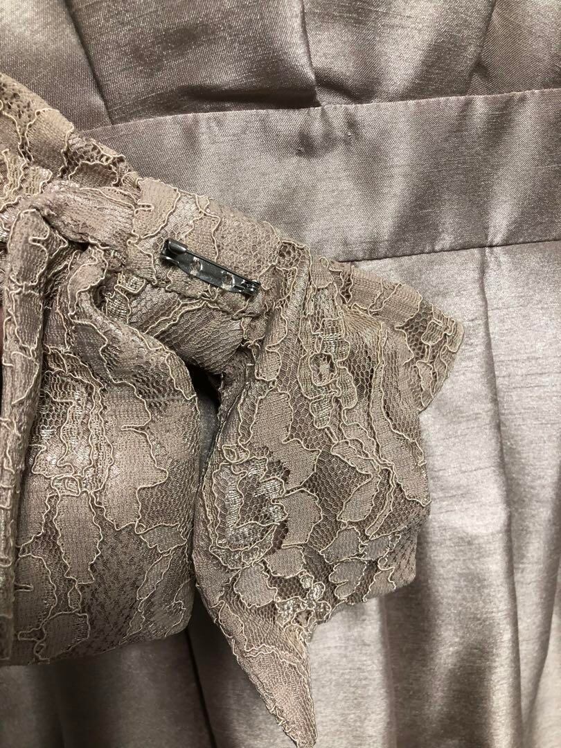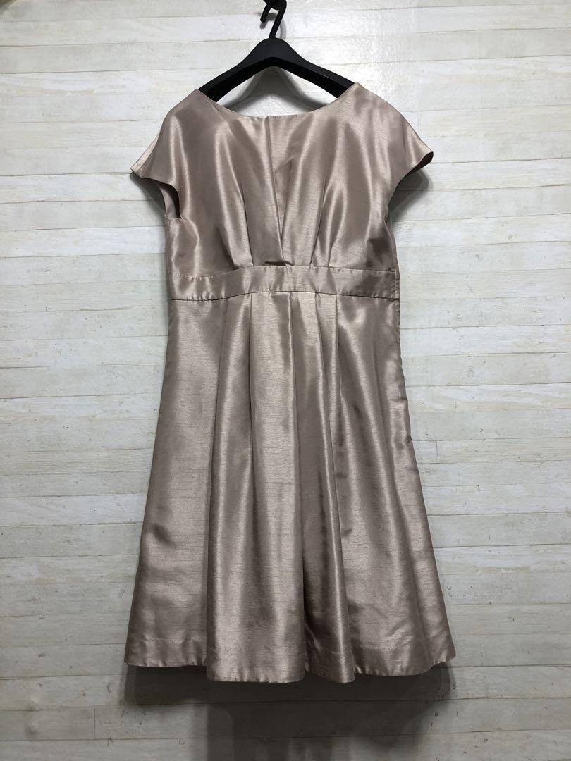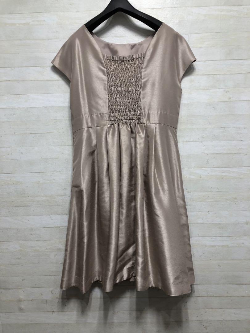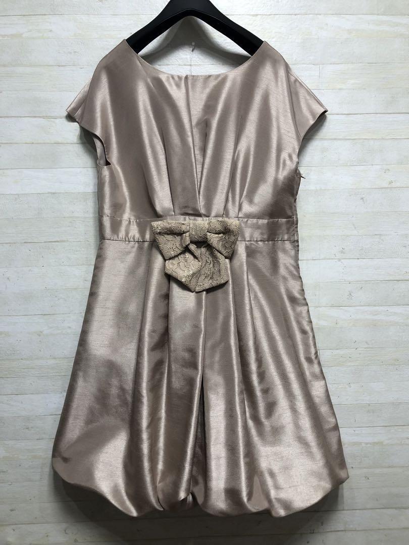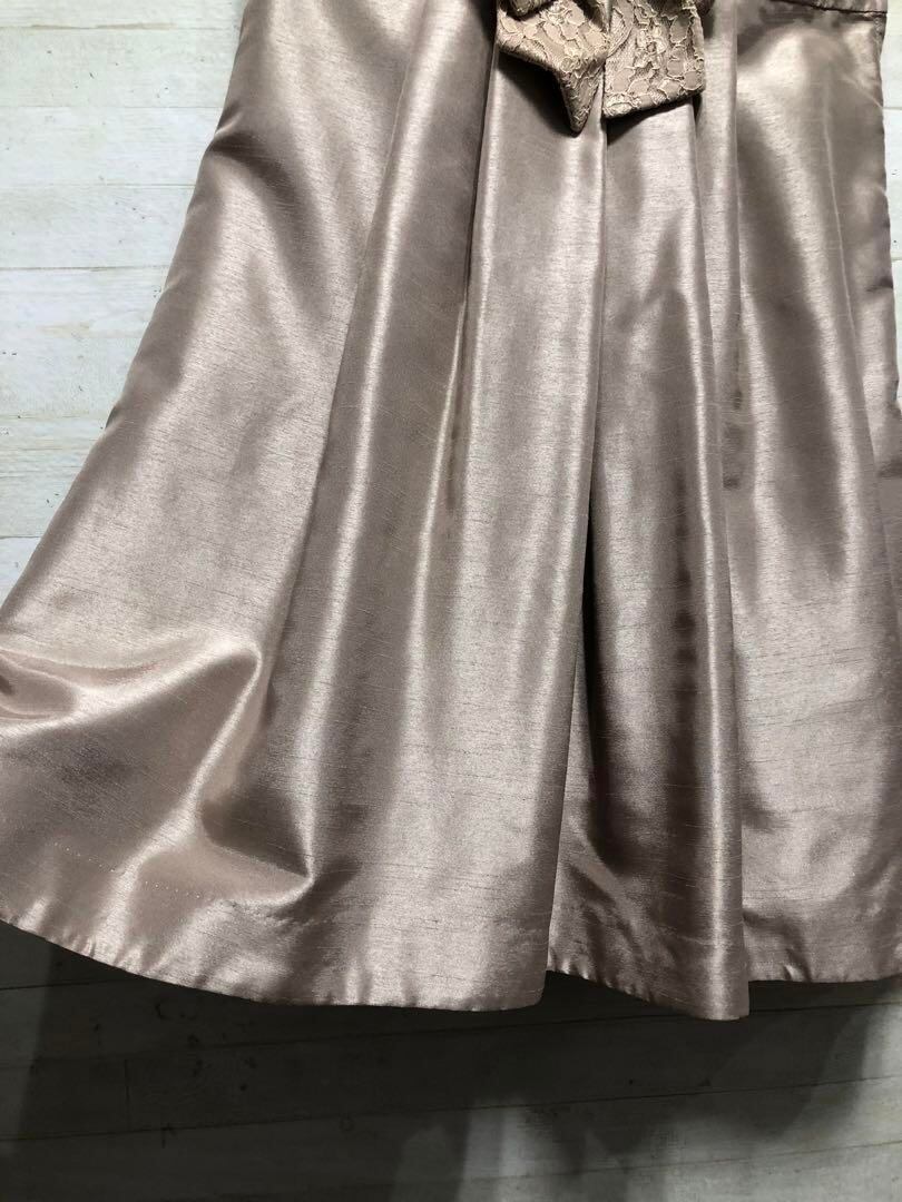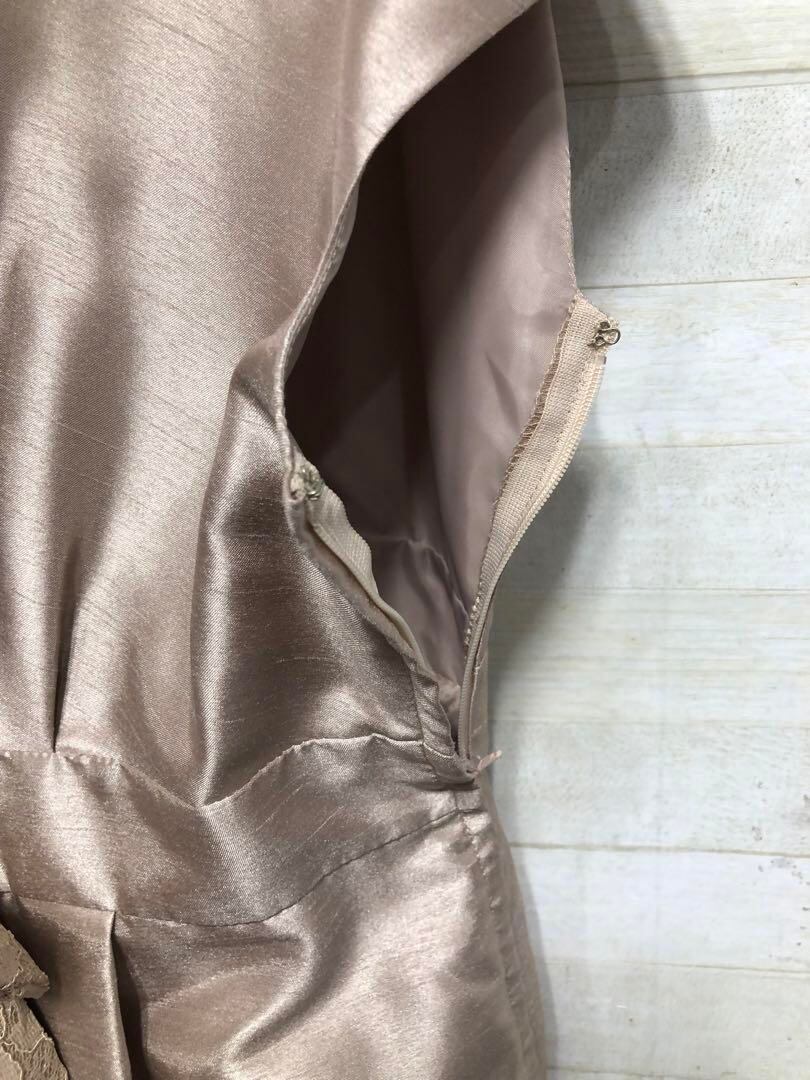 新品☆17号LLシャンパンベージュ系パーティワンピース♪シャンタン素材〇D594
