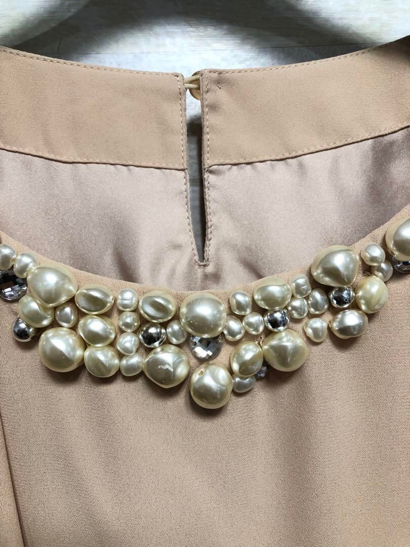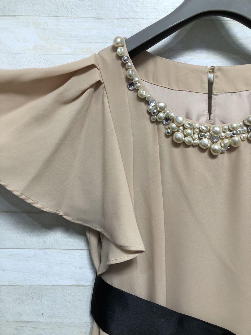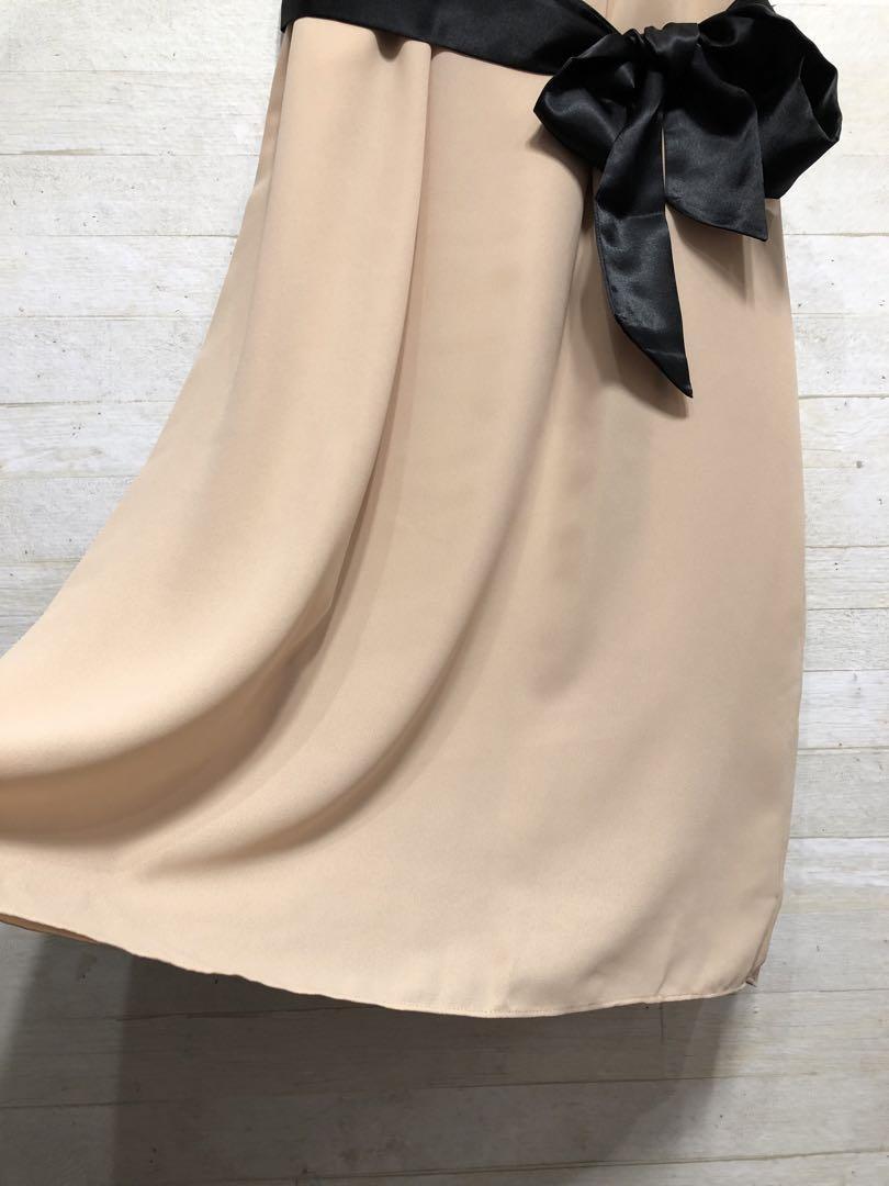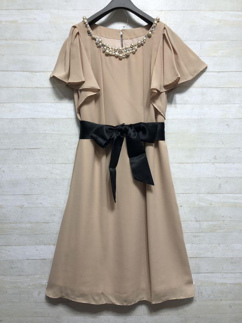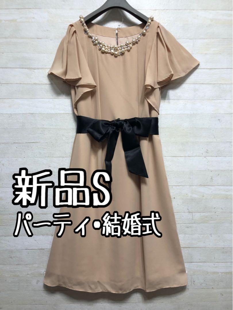 新品☆S♪ベージュ系のパーティワンピース♪謝恩会や二次会などに最適♪◯D595