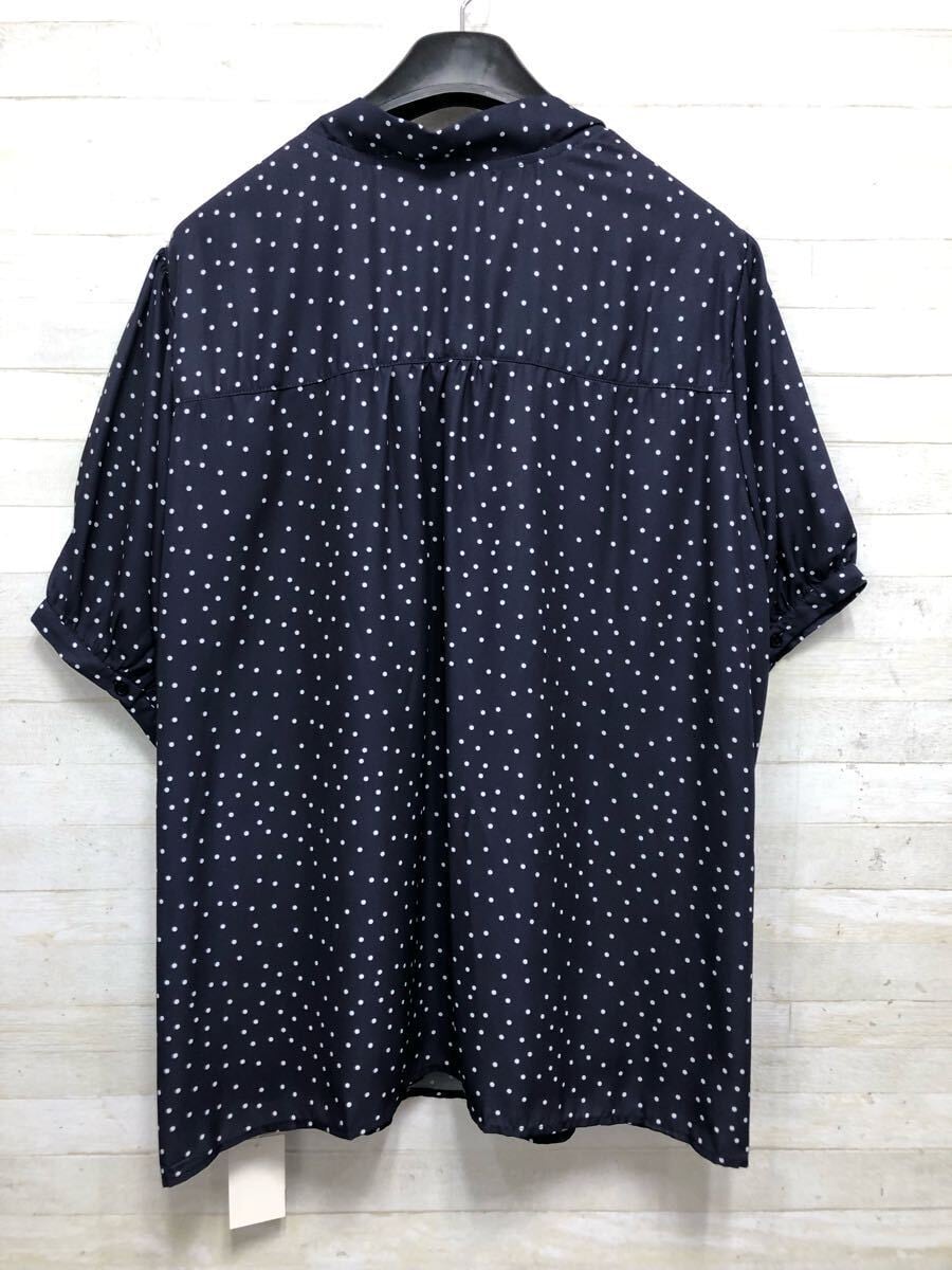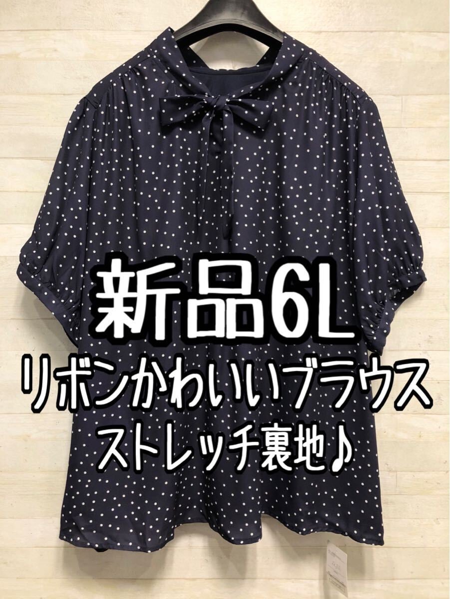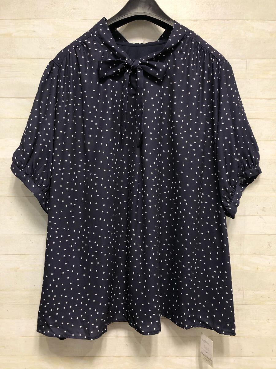 新品☆6L紺系♪ドット柄&リボンかわいい♪半袖ブラウス〇G388