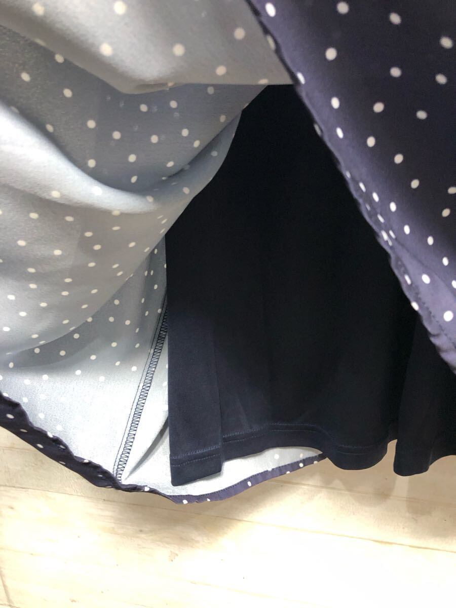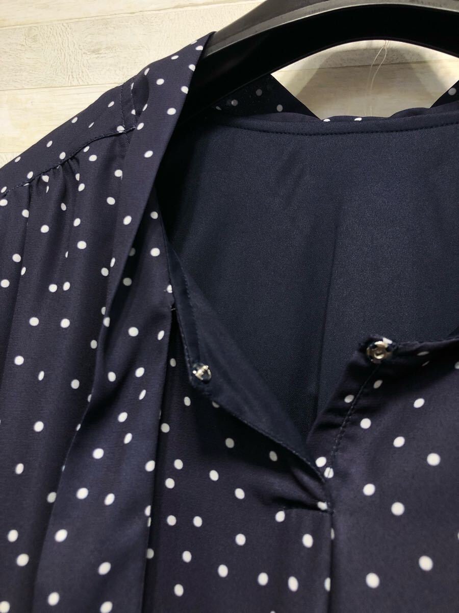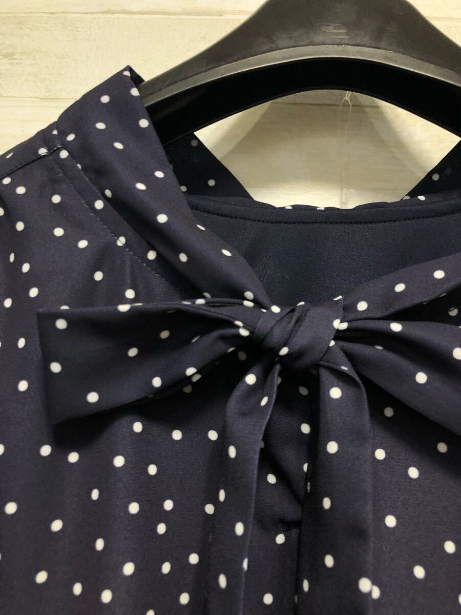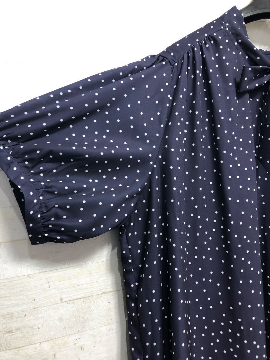 新品☆6L紺系♪ドット柄&リボンかわいい♪半袖ブラウス〇G388