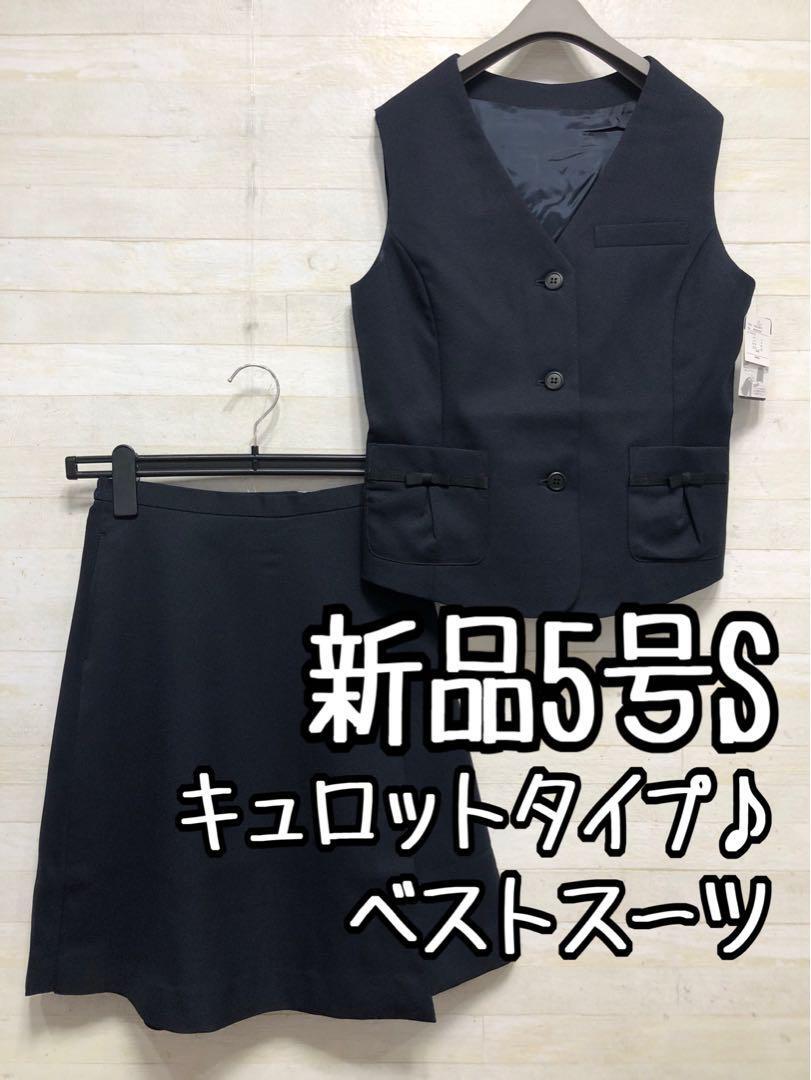 新品☆5号S♪紺系無地キュロットスカート♪防汚加工抗菌防臭ベストスーツ〇G394