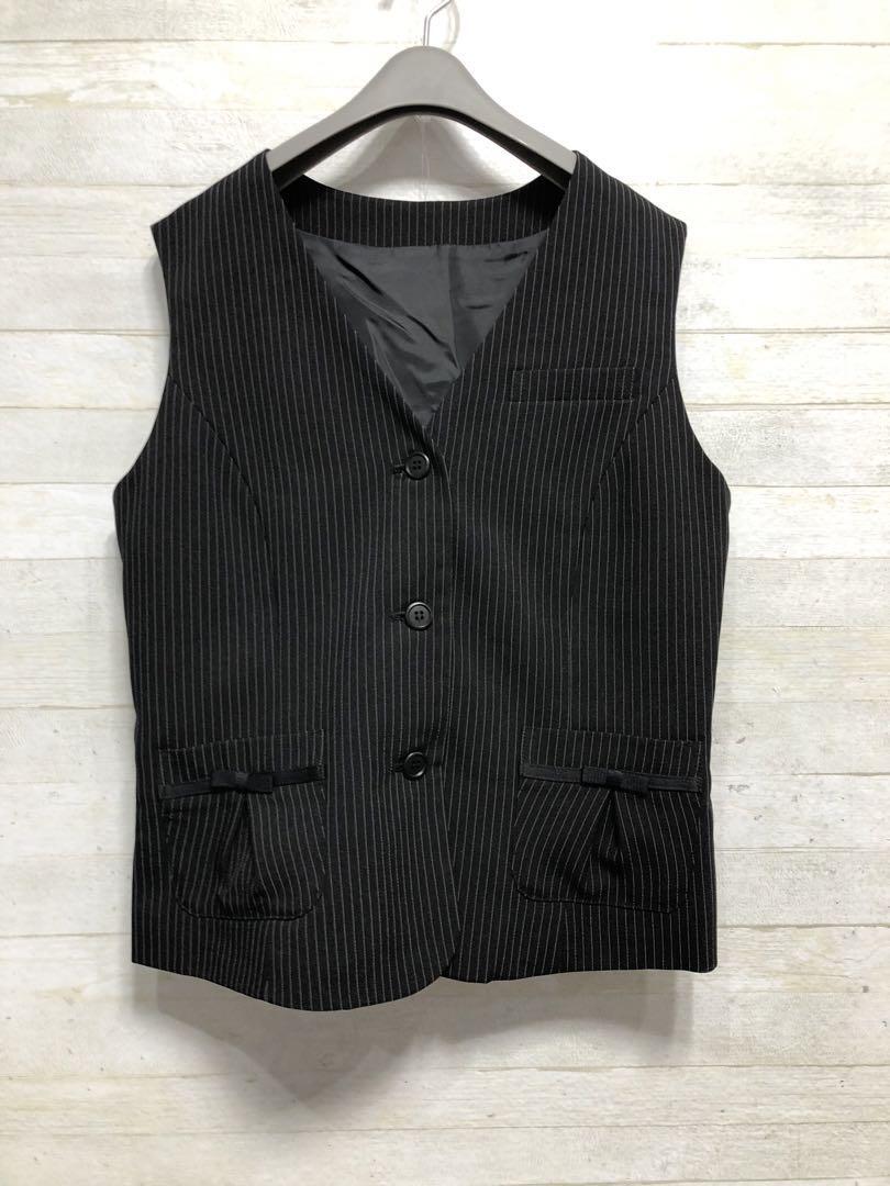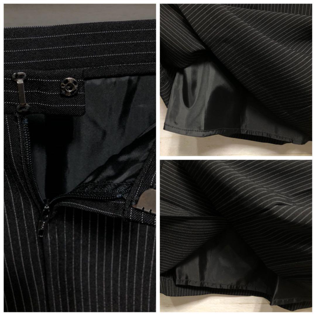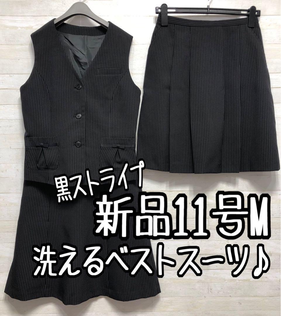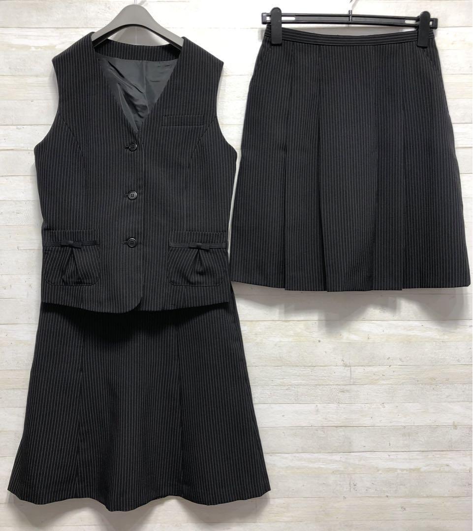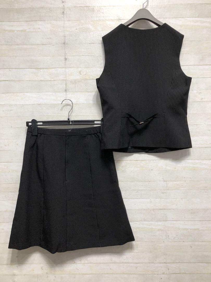 新品☆11号M黒系ストライプ柄♪ベストスーツ事務服スカート2種付♪〇G399