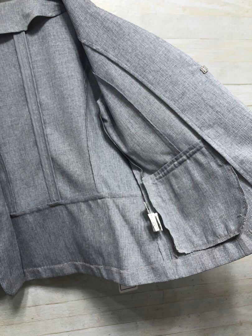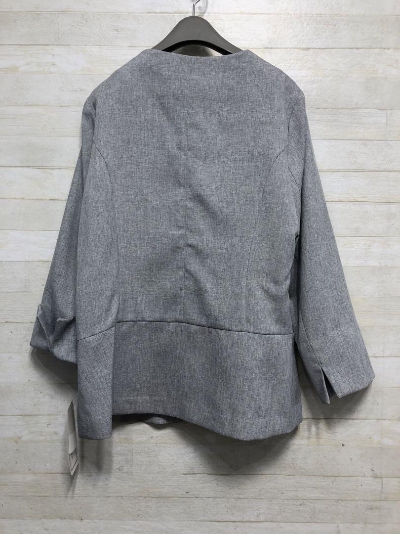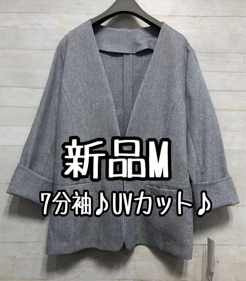 新品☆Mサイズ♪グレー系UVカット素材の7分袖ノーカラージャケット〇G432