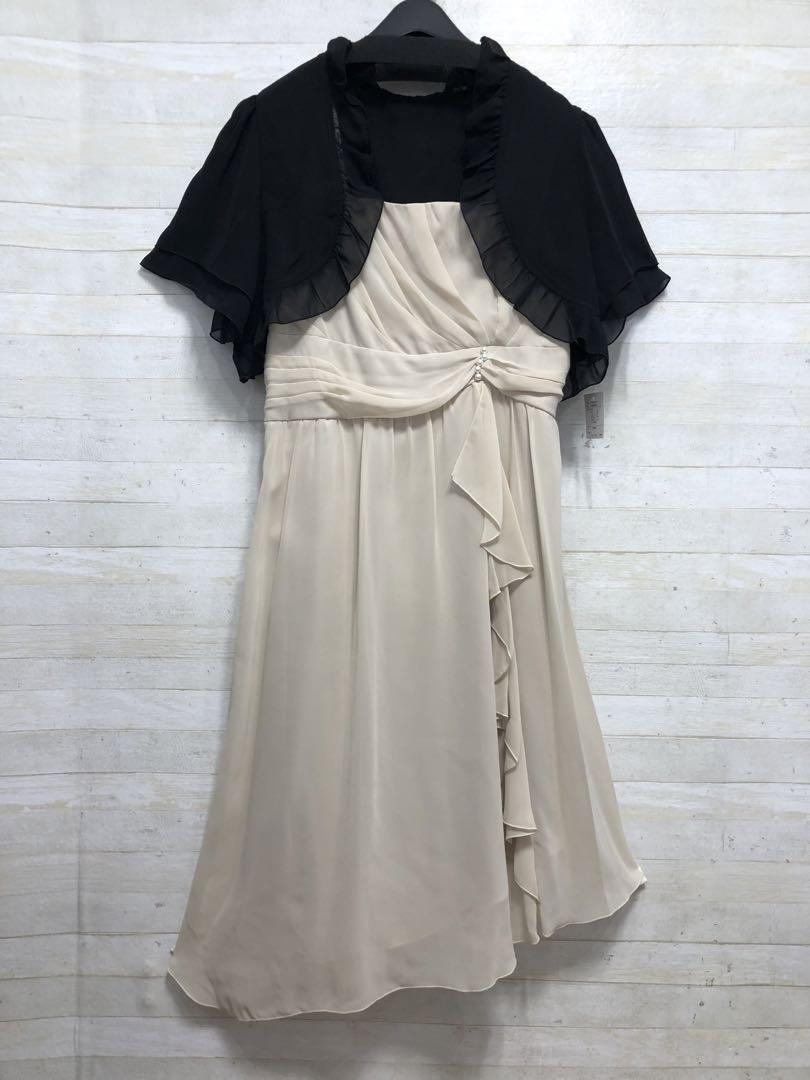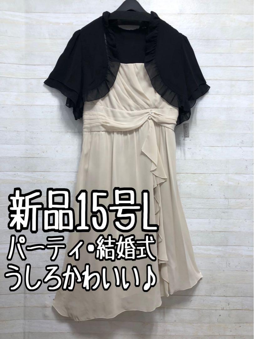 新品☆15号L長め丈裾シフォンパーティーワンピース♪ボレロ付き〇G448