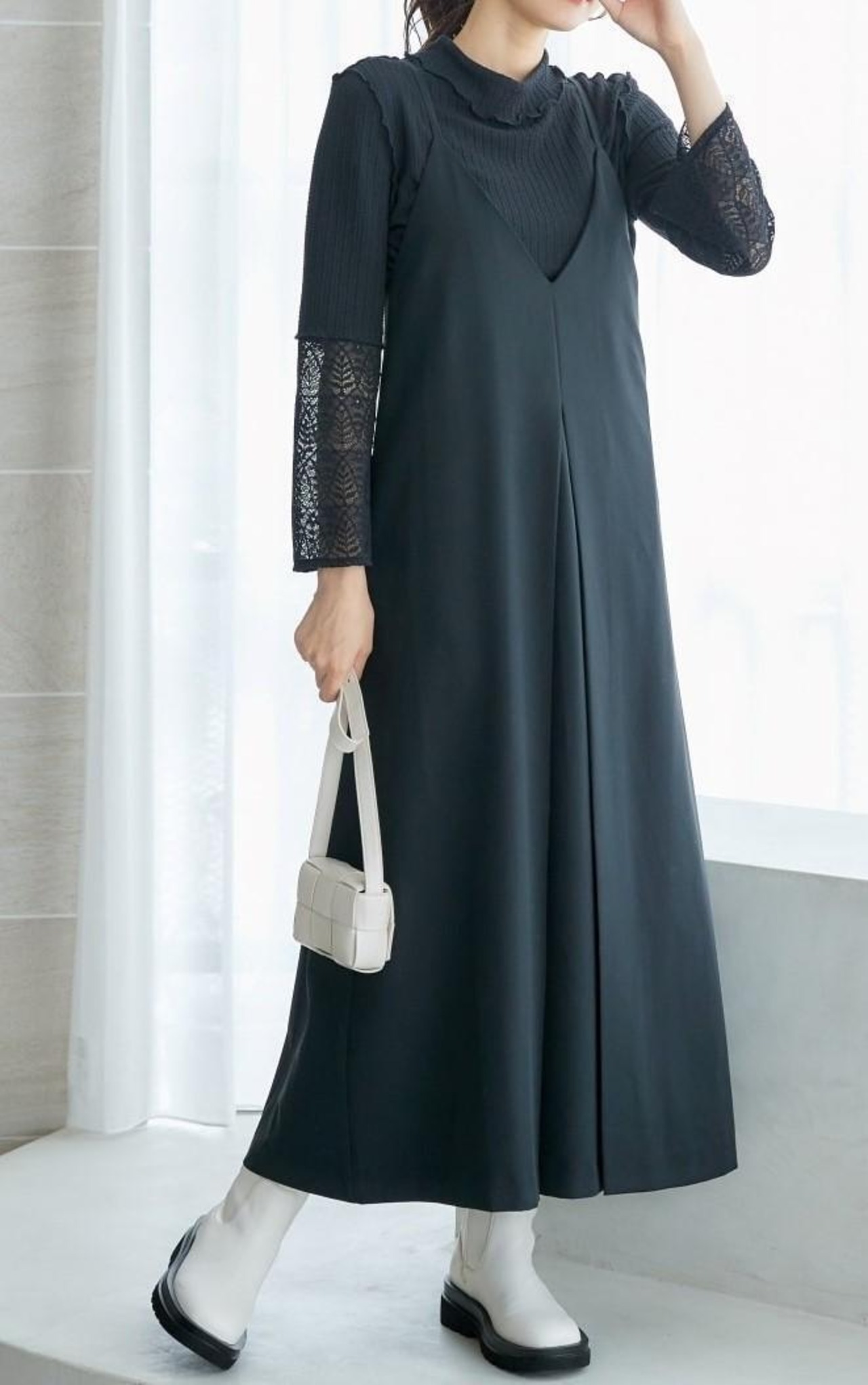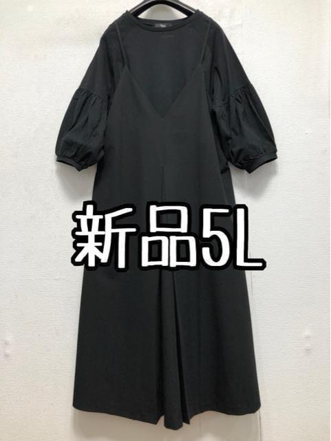 新品☆5L♪黒系♪ボリューム袖カットソー&ロングキャミワンピ☆b859
