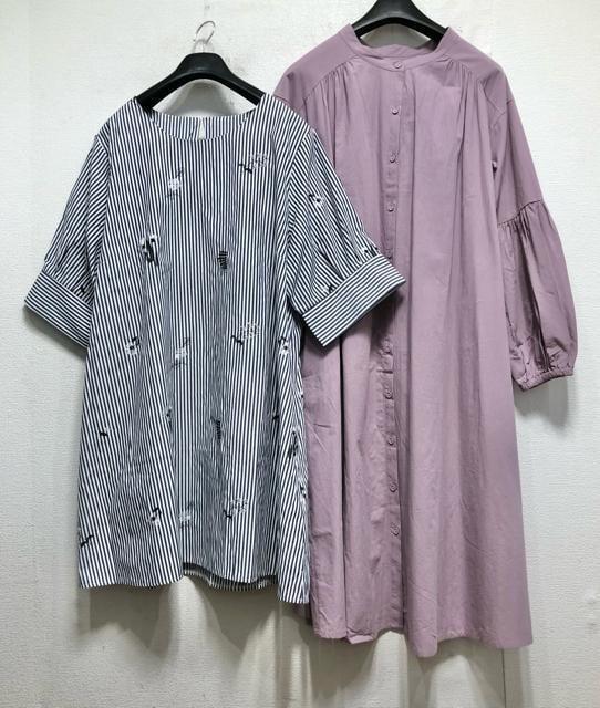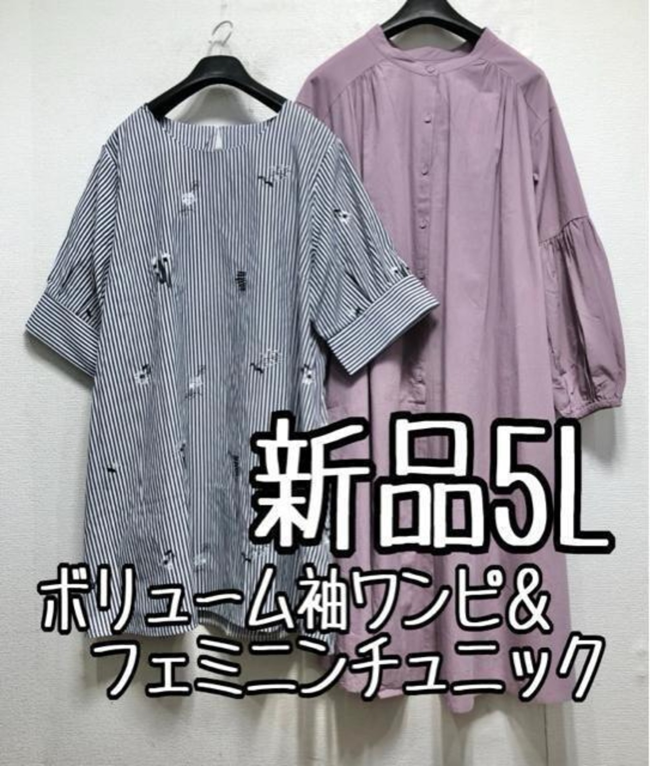 新品☆5L♪くすみカラーワンピ&ストライプ×刺しゅうチュニックワンピ☆x178