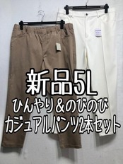 新品☆5L白系ひんやりストレートパンツ&モカ系カジュアルパンツ☆a764