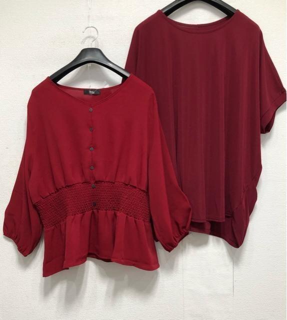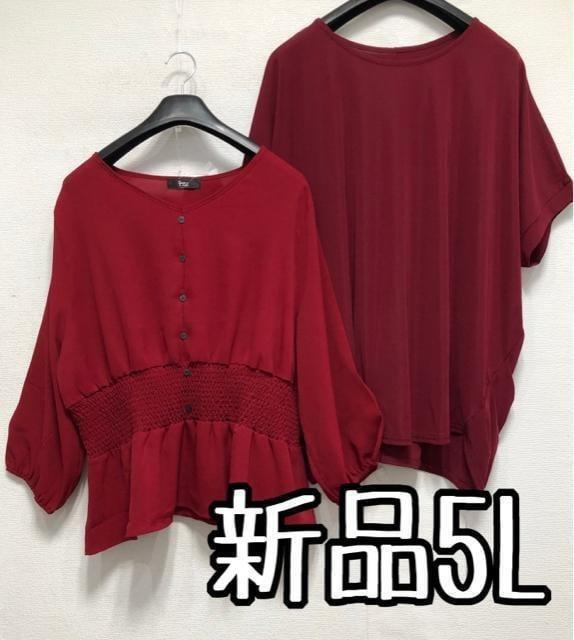 新品☆5L赤系ウエストデザインブラウス&ドルマンカットソー大人かわいい☆x257