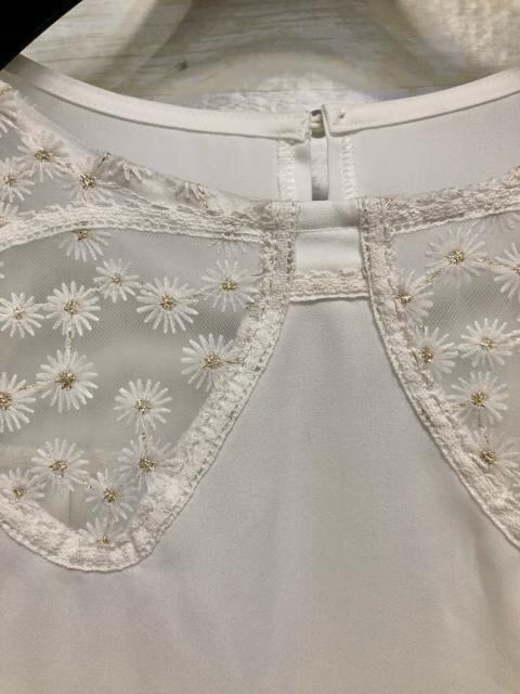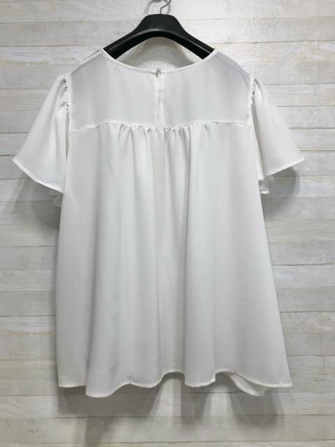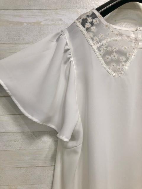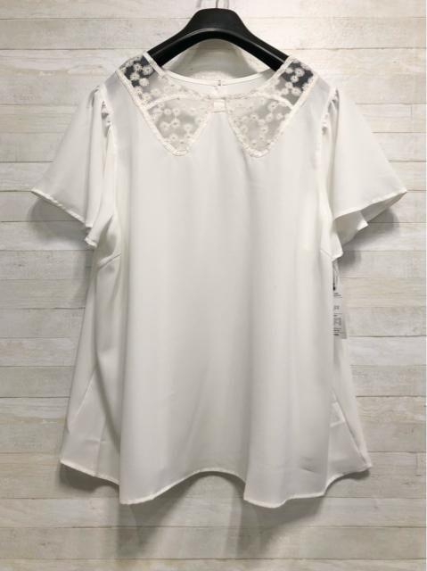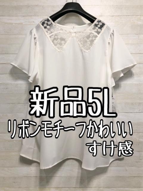 新品☆5L白系♪リボンのような透け感フェミニンブラウス☆f219