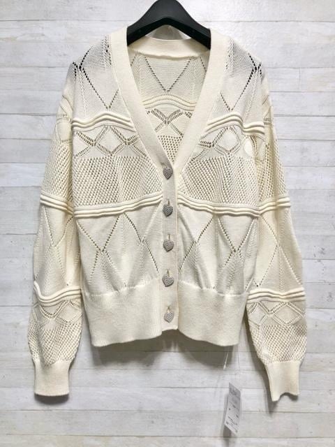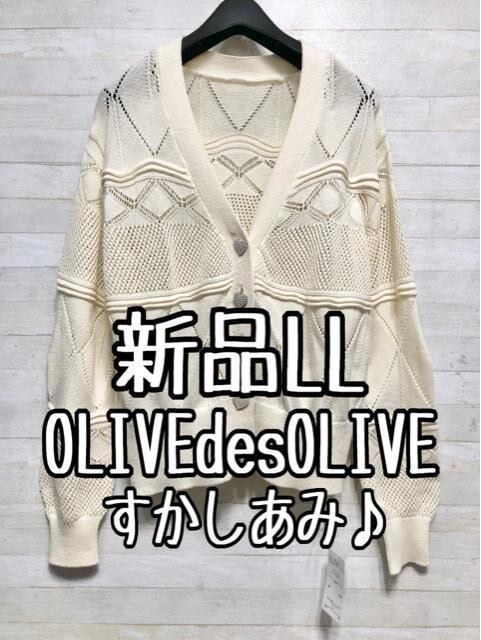 新品☆LLアイボリー系OLIVE♪透かし編みニットカーデ〇G481