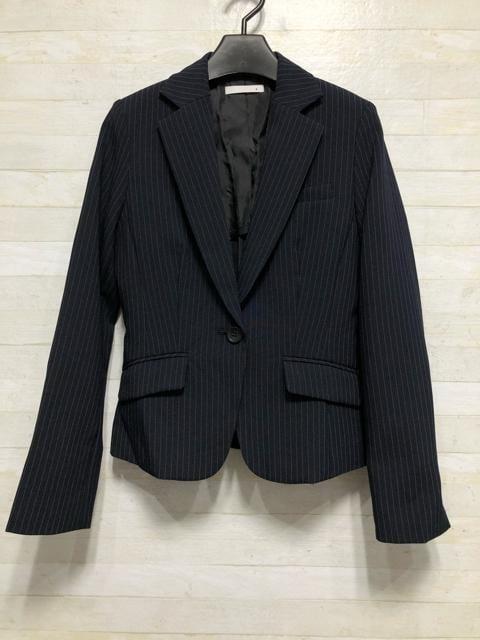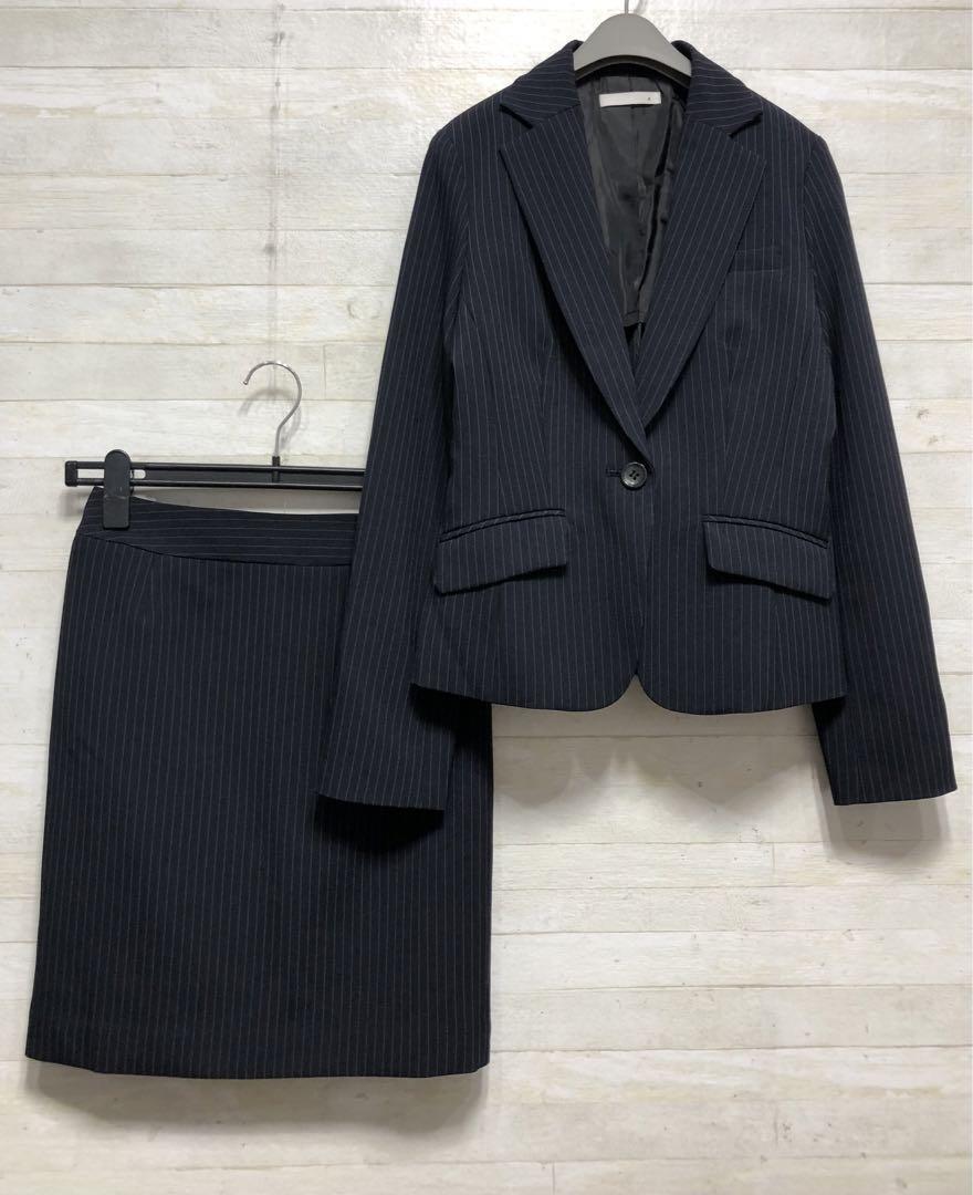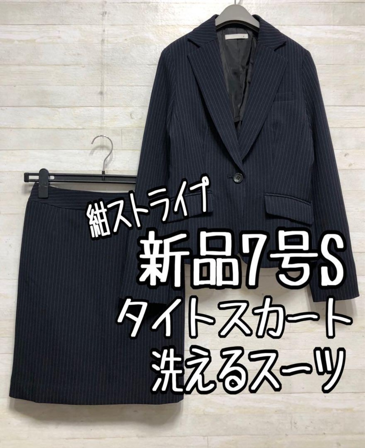 新品☆7号S♪紺系ストライプ♪タイトスカートスーツ♪お仕事・通勤○G487