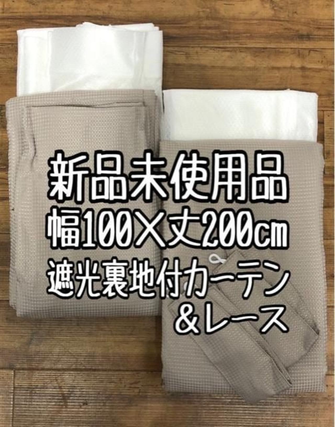 新品☆幅100×丈200cm♪くすみカラー♪遮光裏地ワッフルカーテン&レース〇D615