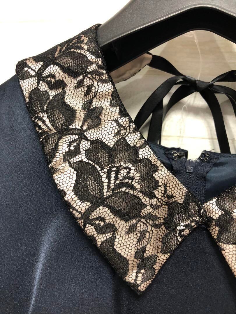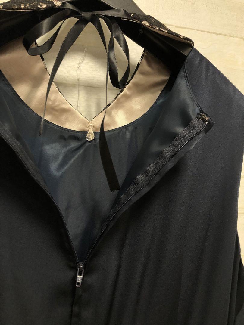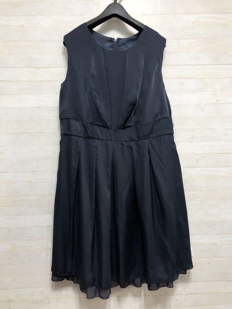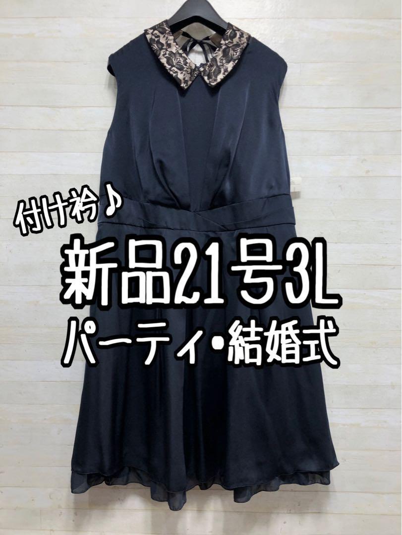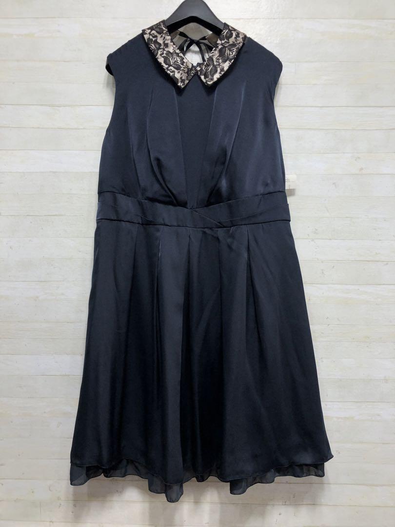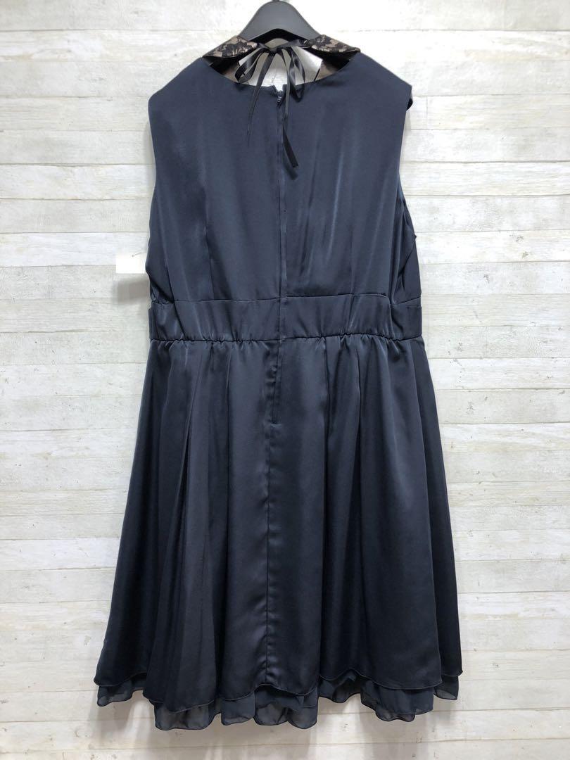 新品☆21号3L♪紺系の付け衿つきパーティワンピース♪結婚式〇G493