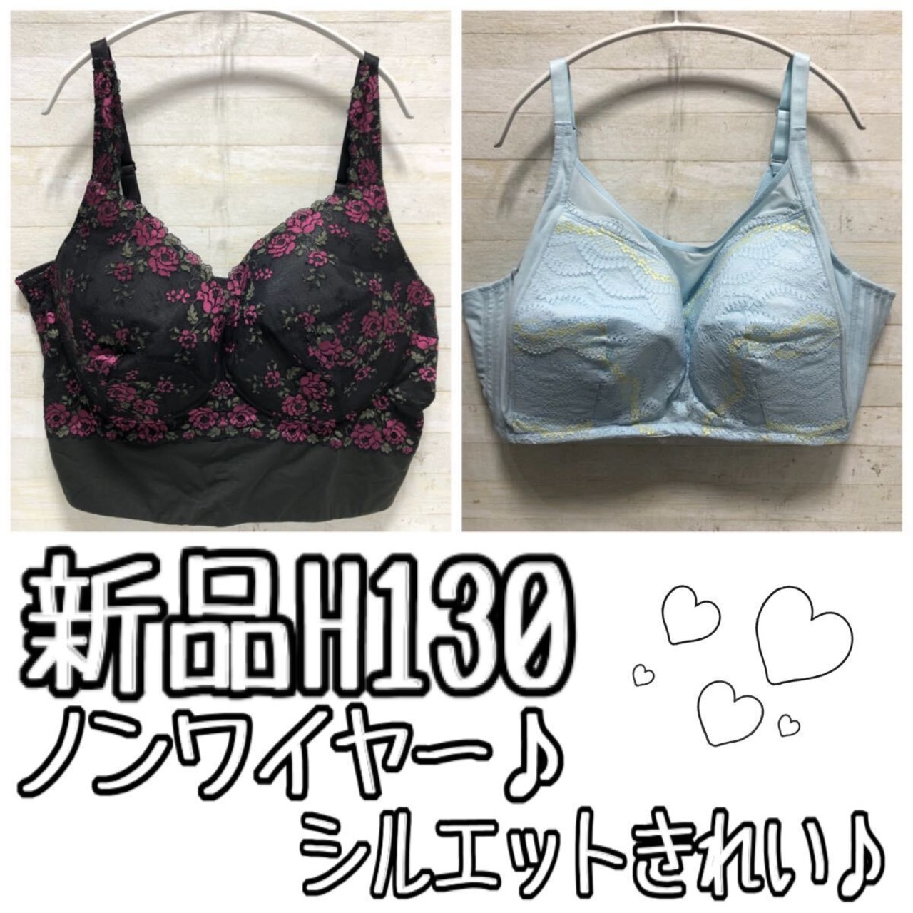 新品☆H130♪ノンワイヤー楽ちん♪シルエットきれい見えブラ2枚〇G506
