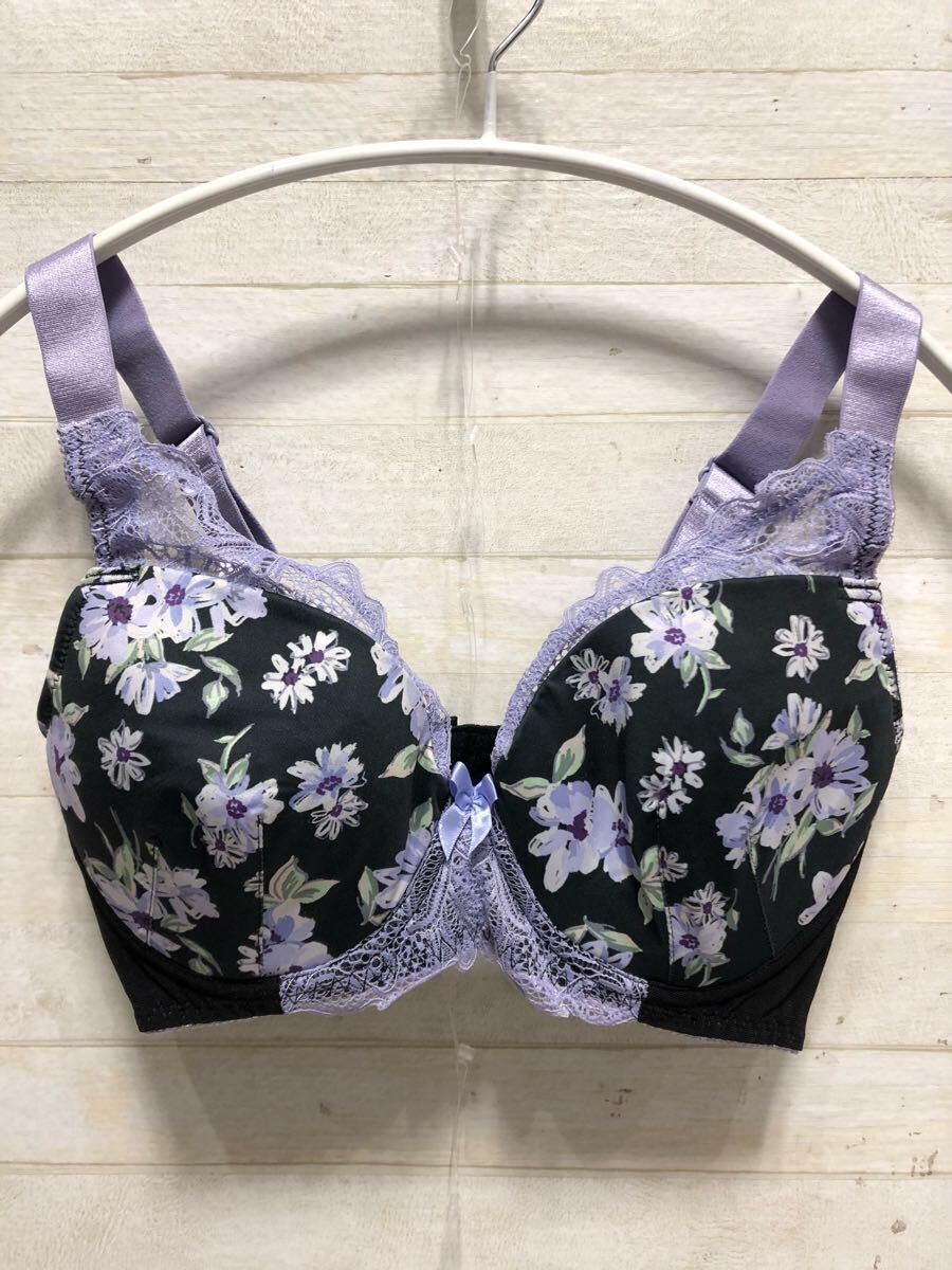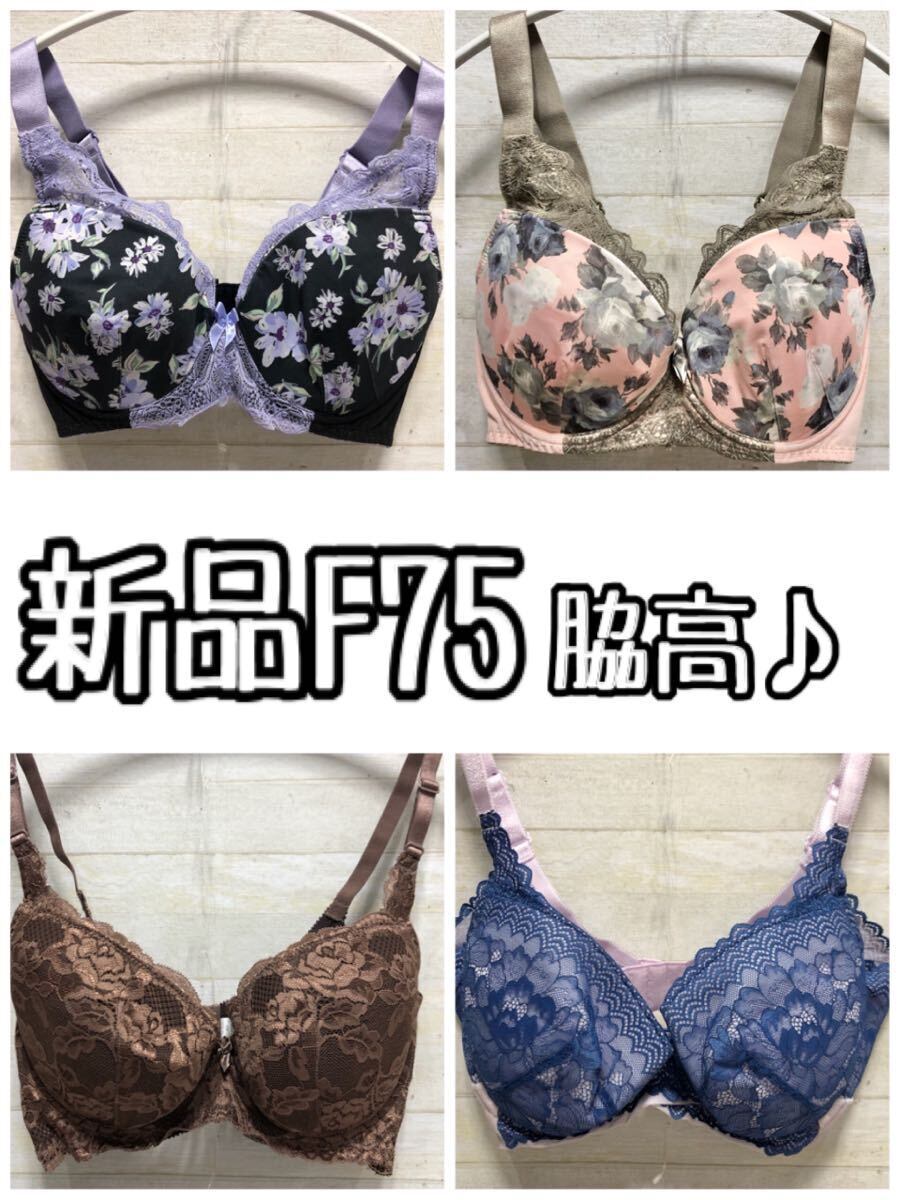 新品☆F75♪レース&プリントデザイン♪脇高ブラジャー4枚セット〇G508