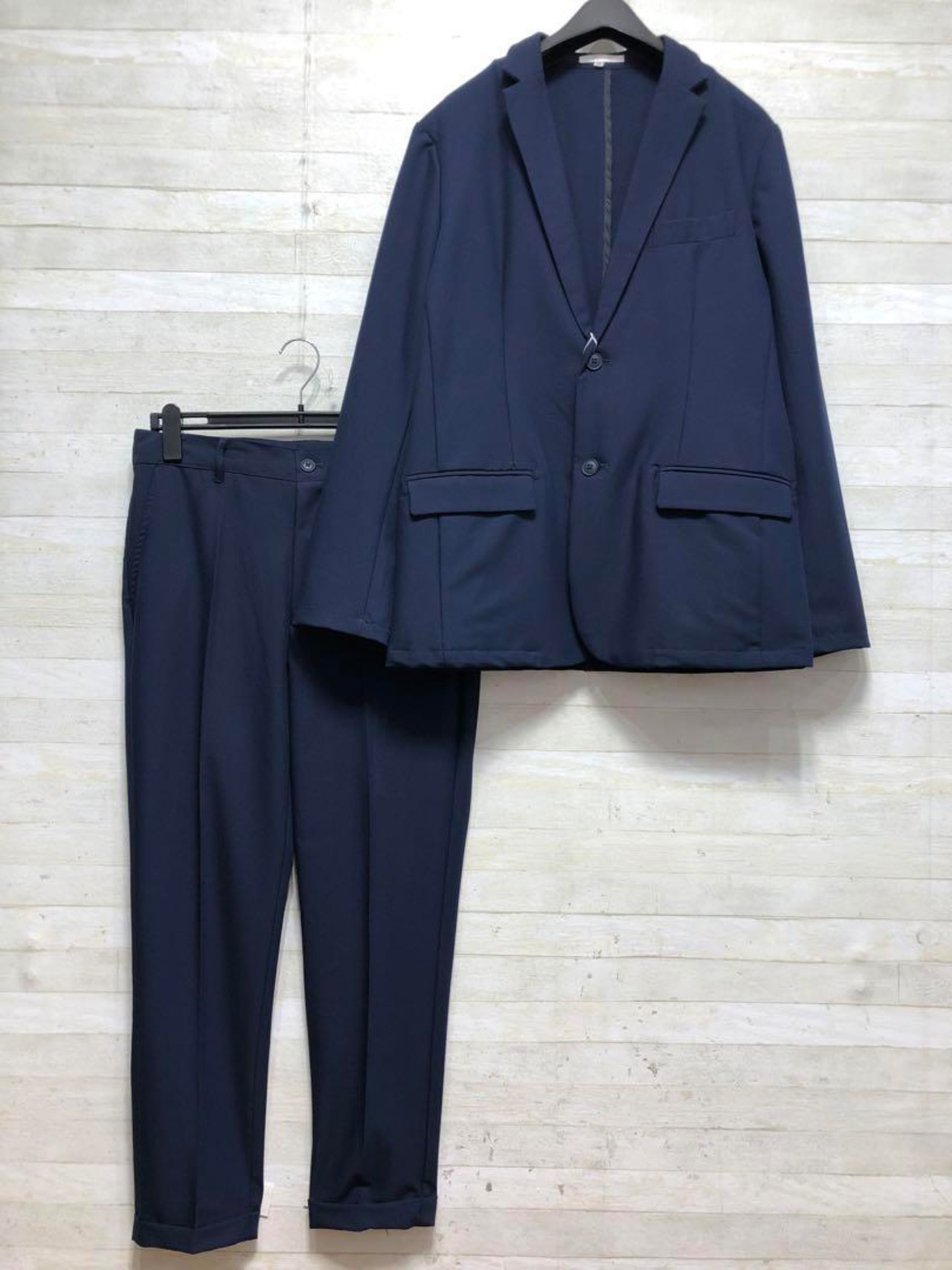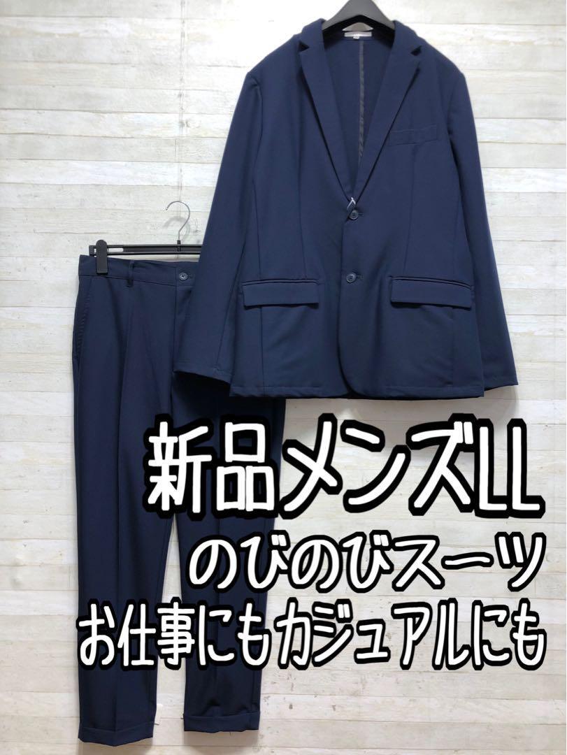 新品☆メンズLL♪紺系ストレッチ素材セットアップスーツ〇D643