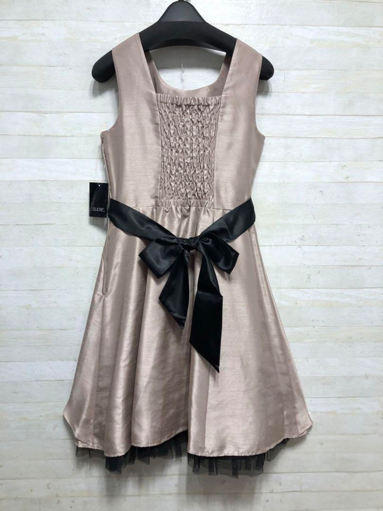 黒サテンのウエストリボンベルト付き