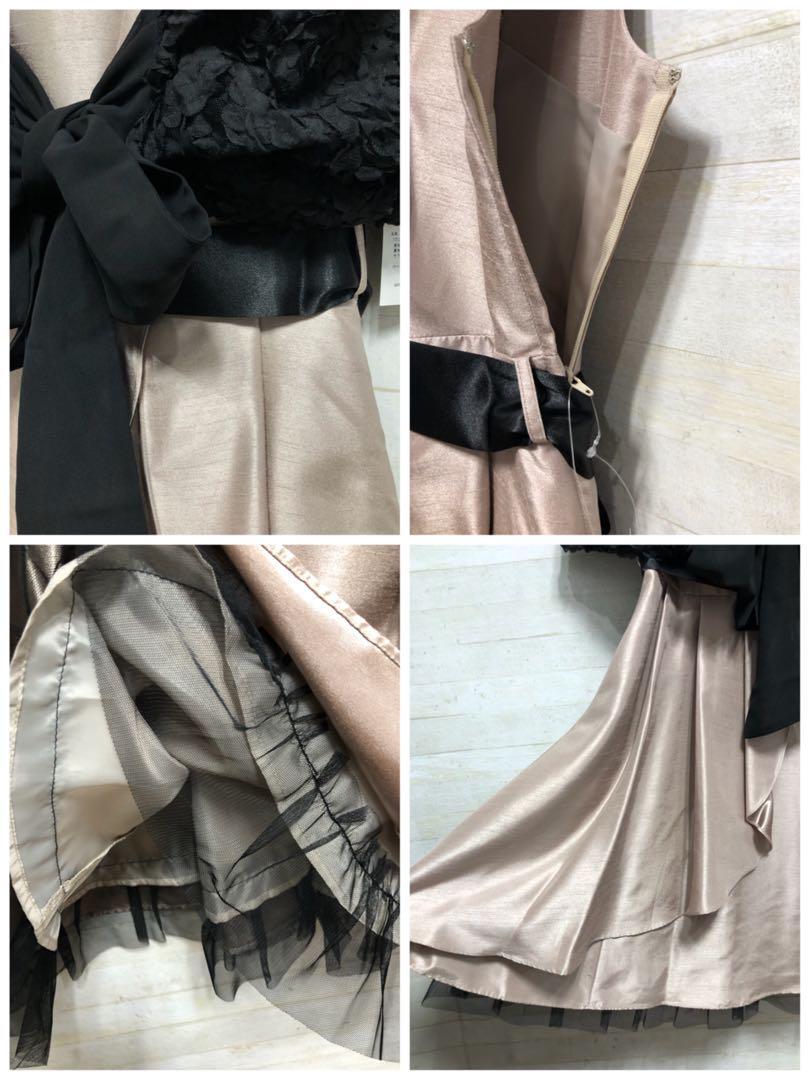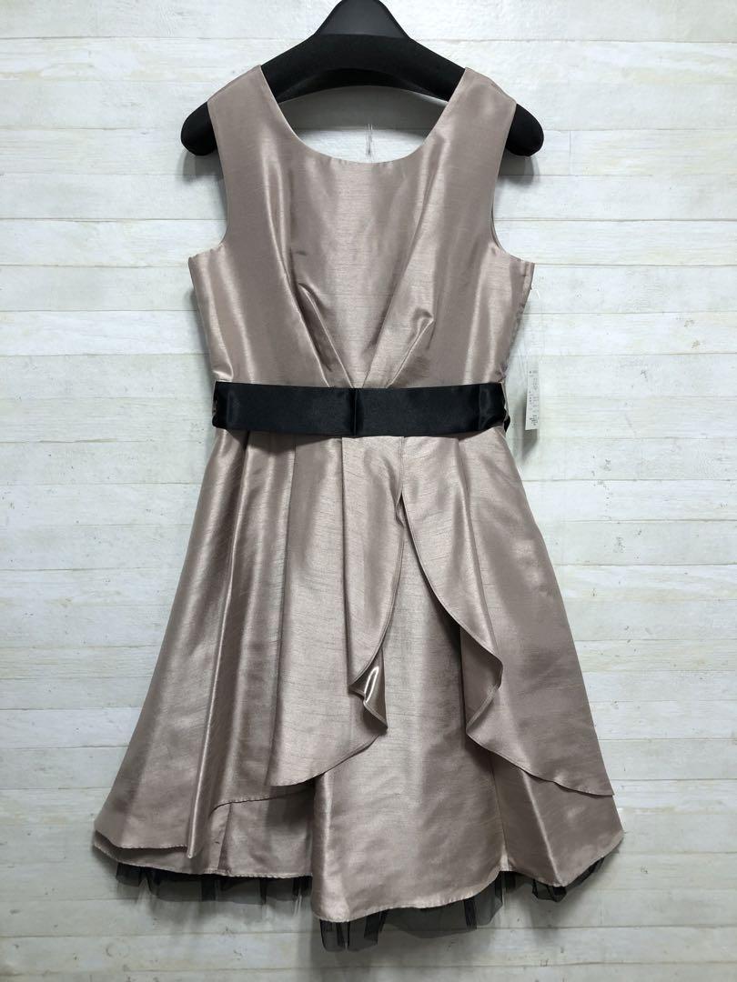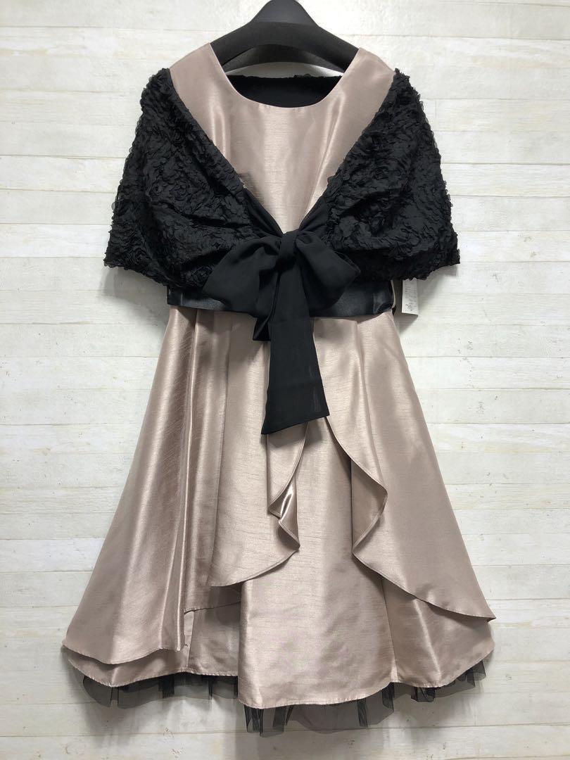 新品☆11号M♪ベージュ系♪パーティーワンピース+ずれないボレロ付♪〇D648