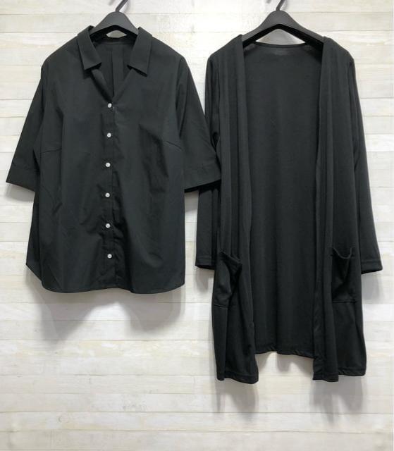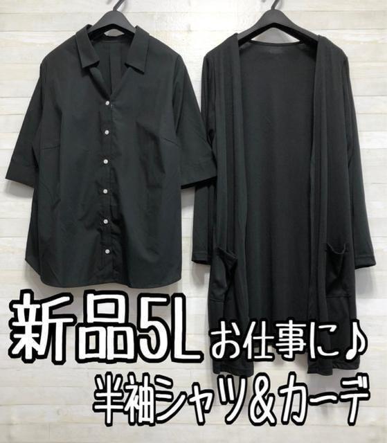 新品☆5L♪黒系無地♪お仕事に♪半そでシャツ&うす手カーディガン☆x895
