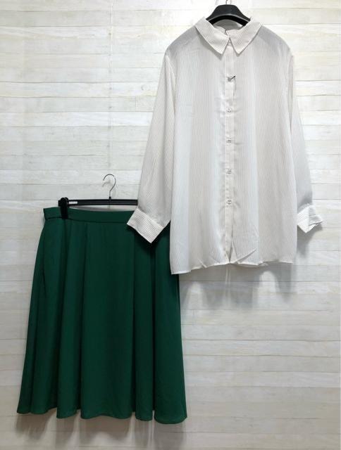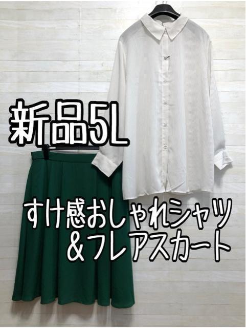 新品☆5L♪後ろステキなシアーシャツ&グリーンきれいスカート☆x912
