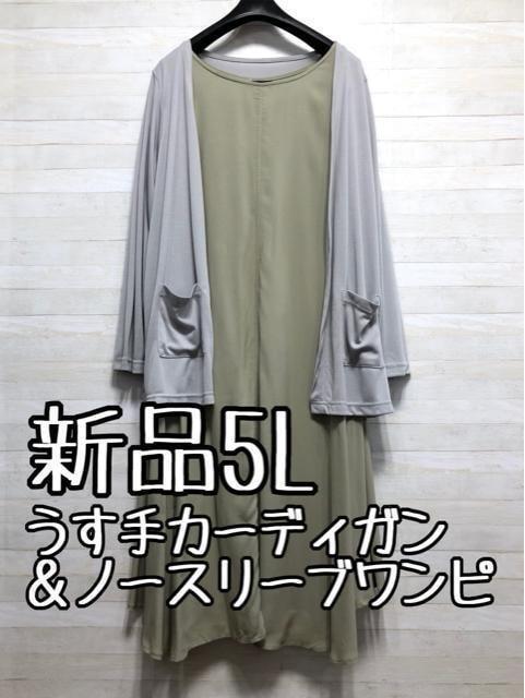新品☆5L♪落ち着きのある大人おしゃれなカーデ&ノースリワンピ☆x966