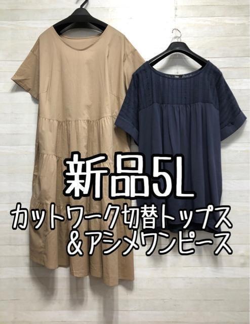 新品☆5L♪フェミニントップス&ティアードワンピース☆x967