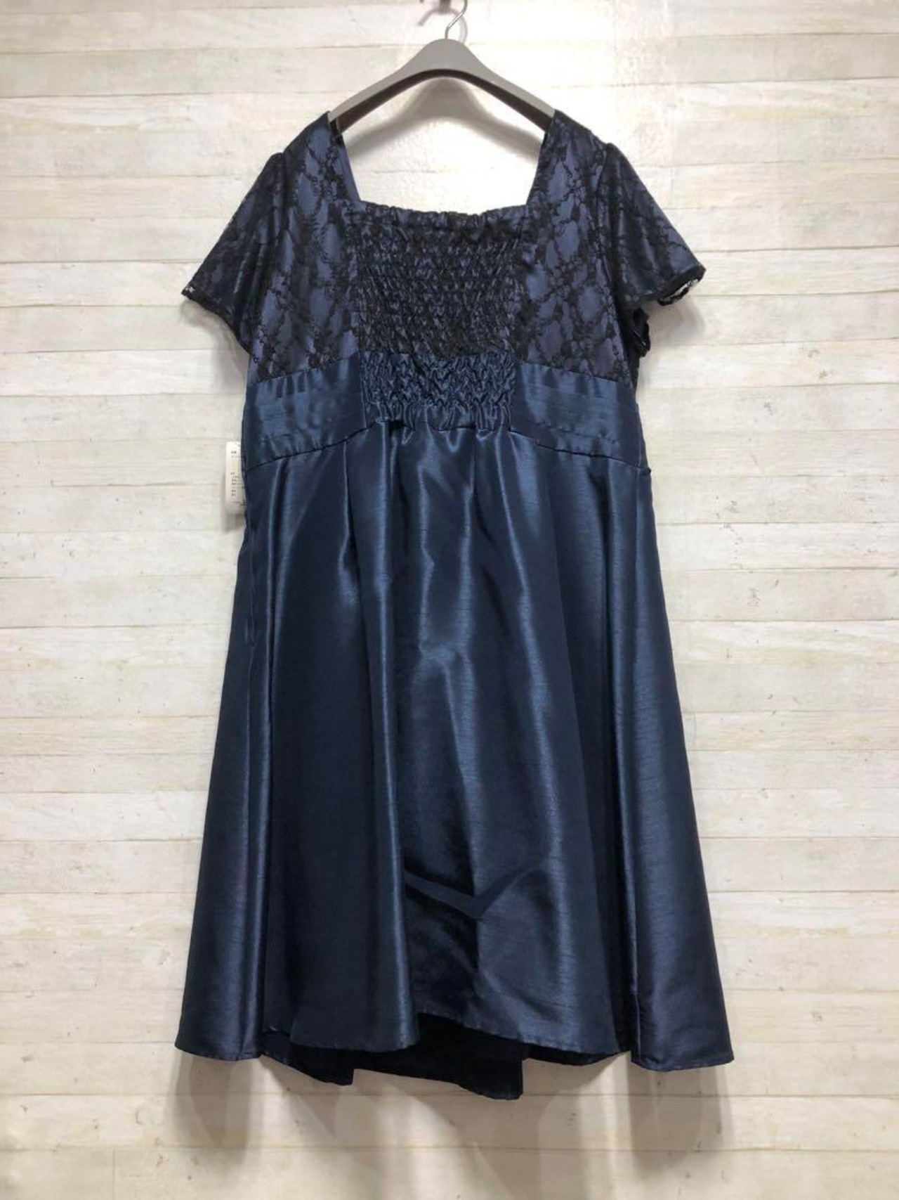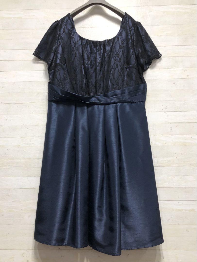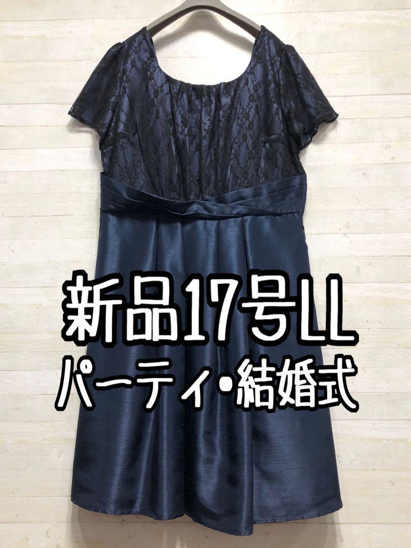 新品☆17号LL♪紺系のパーティワンピース♪謝恩会や二次会などに最適〇D650