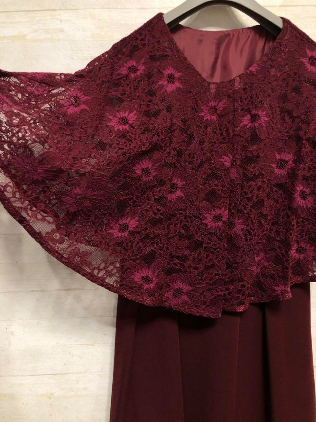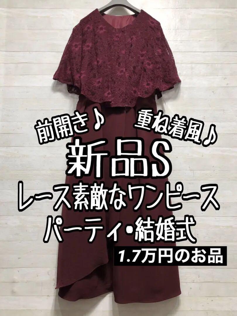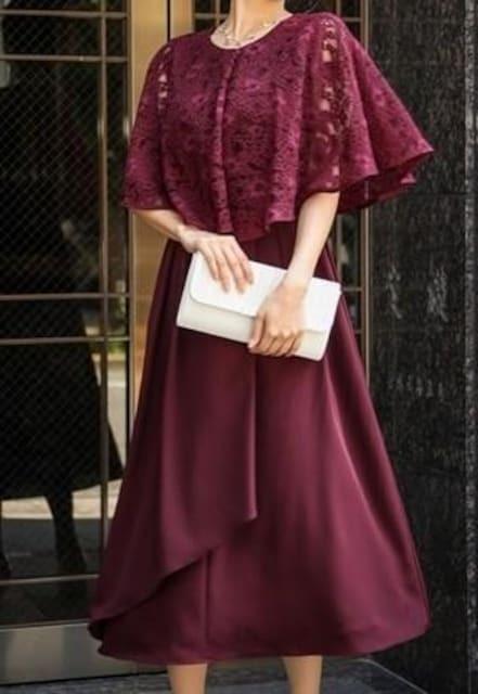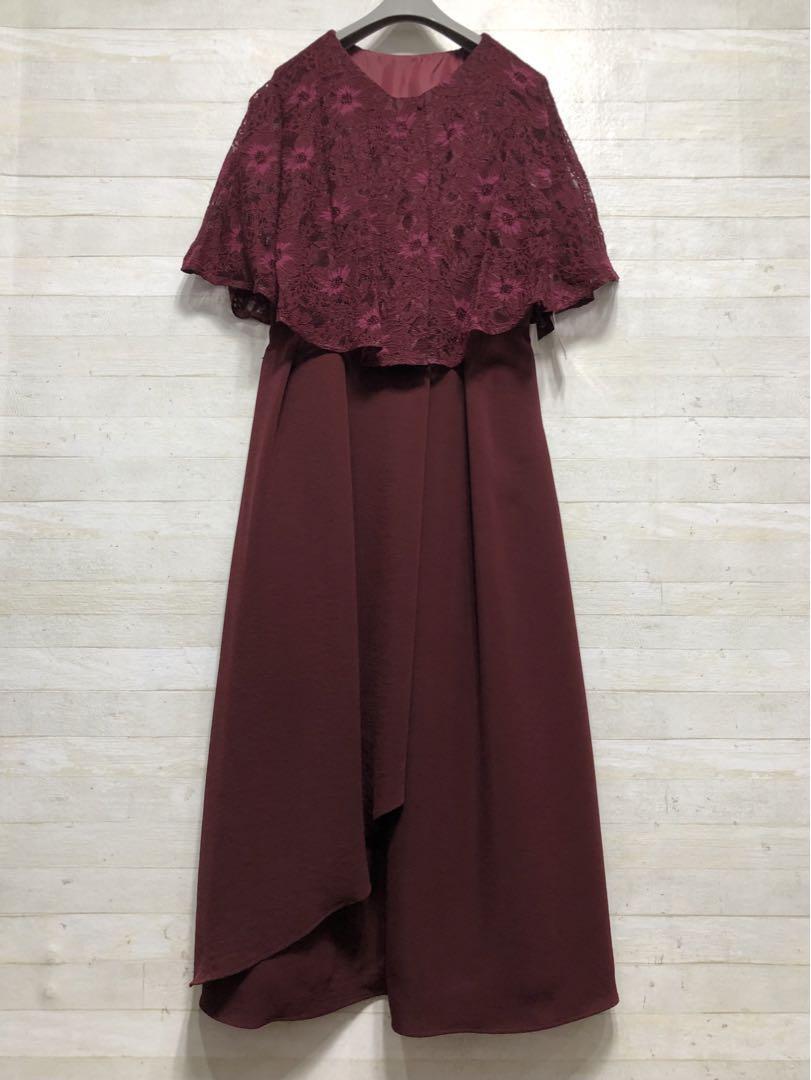 新品☆Sボルドー系♪ケープ風レースおしゃれワンピースドレス♪結婚式〇D655