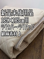 新品☆185×185cmベージュ系ラグ用カバー♪ラグパッド♪綿麻素材〇G497